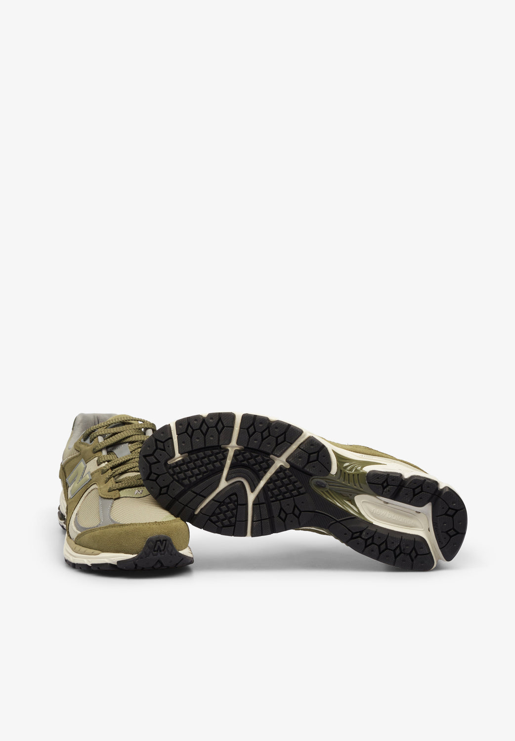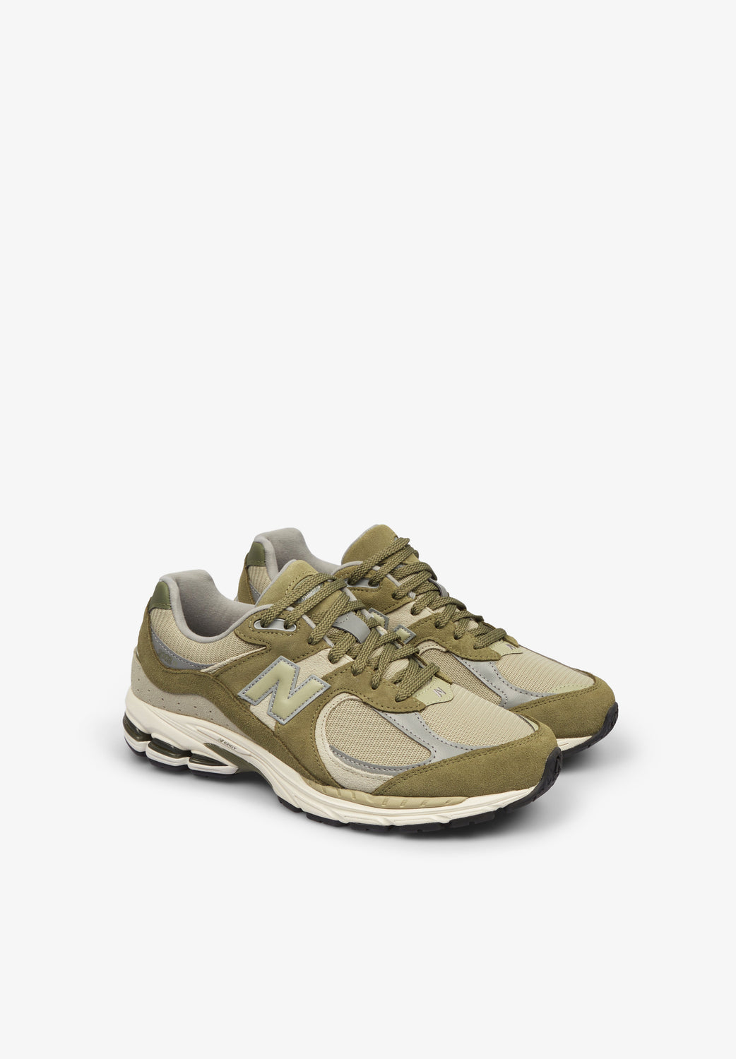 Sapatilhas New Balance confecionadas em tecido de mistura de camurça e malha.