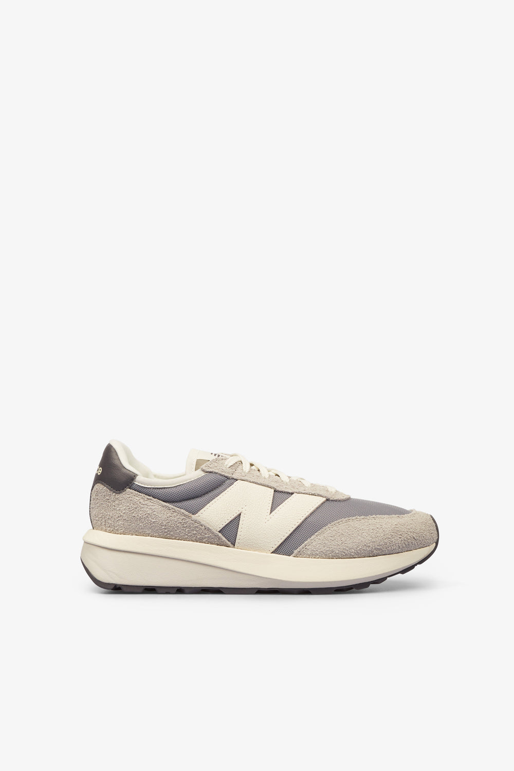 Sapatilhas New Balance 370 confecionadas em tecido de pele de camurça e tecido com biqueira redonda e fecho de cordões.