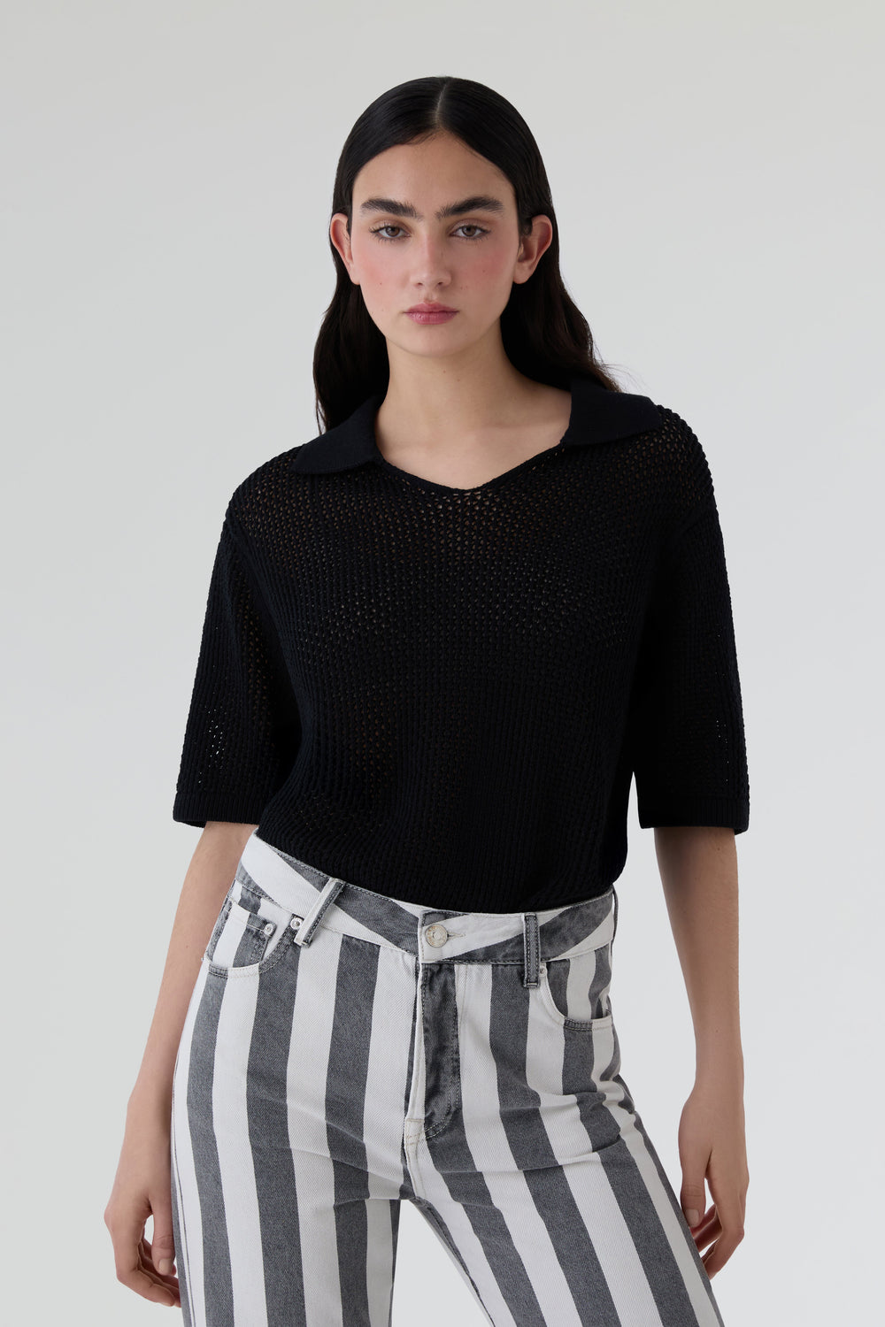 Camisola Ecoalf confecionada em tecido de algodão com corte folgado e gola tipo polo. Malha rendilhada e gola descaída.