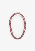 Colar Minerva feito com contas bordeaux em forma de lágrima ou gota comprido multiposição. Fecho em aço inoxidável e comprimento de 120 cm.