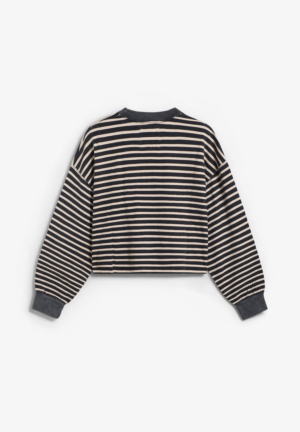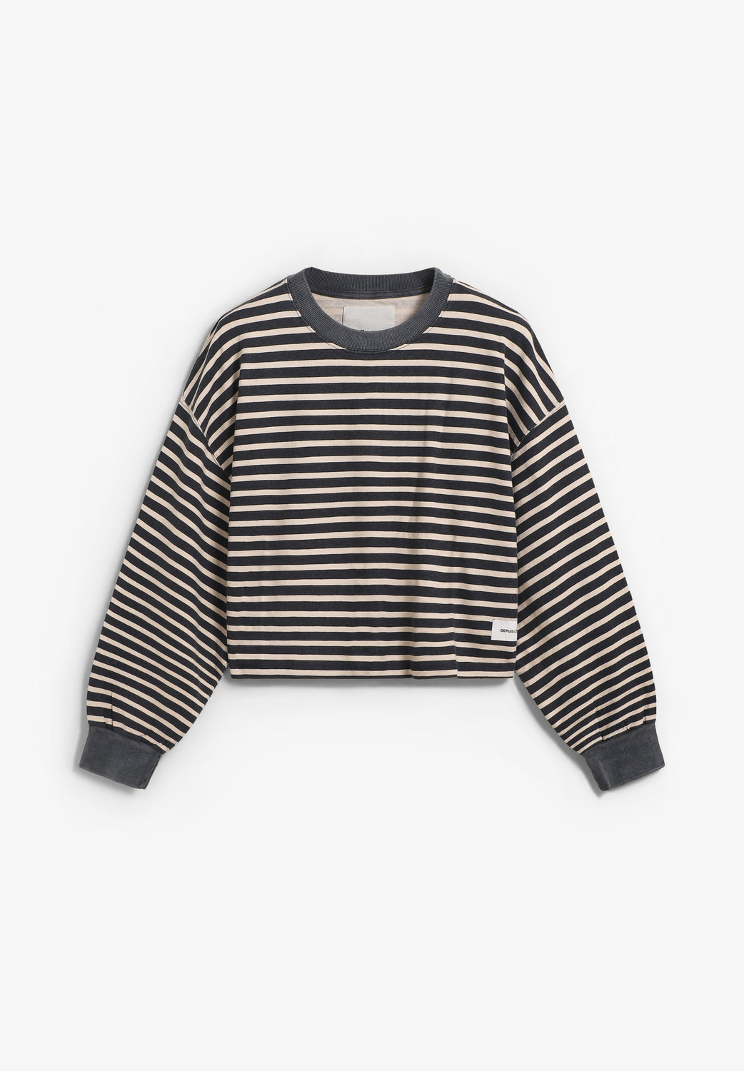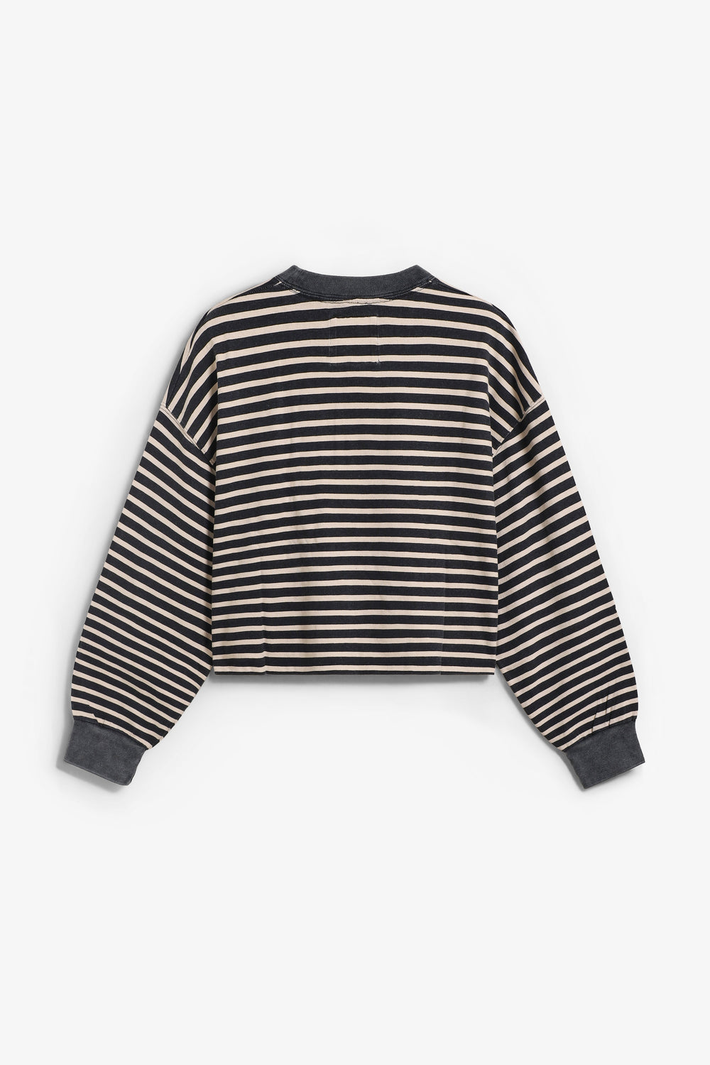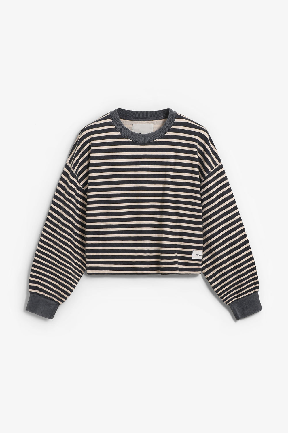 T-shirt de manga comprida Bellerose confecionada em 100% algodão e corte oversize e cropped. Com um decote redondo, decote e punhos canelados em contraste, tecido de peso médio, design às riscas e pormenor de etiqueta.