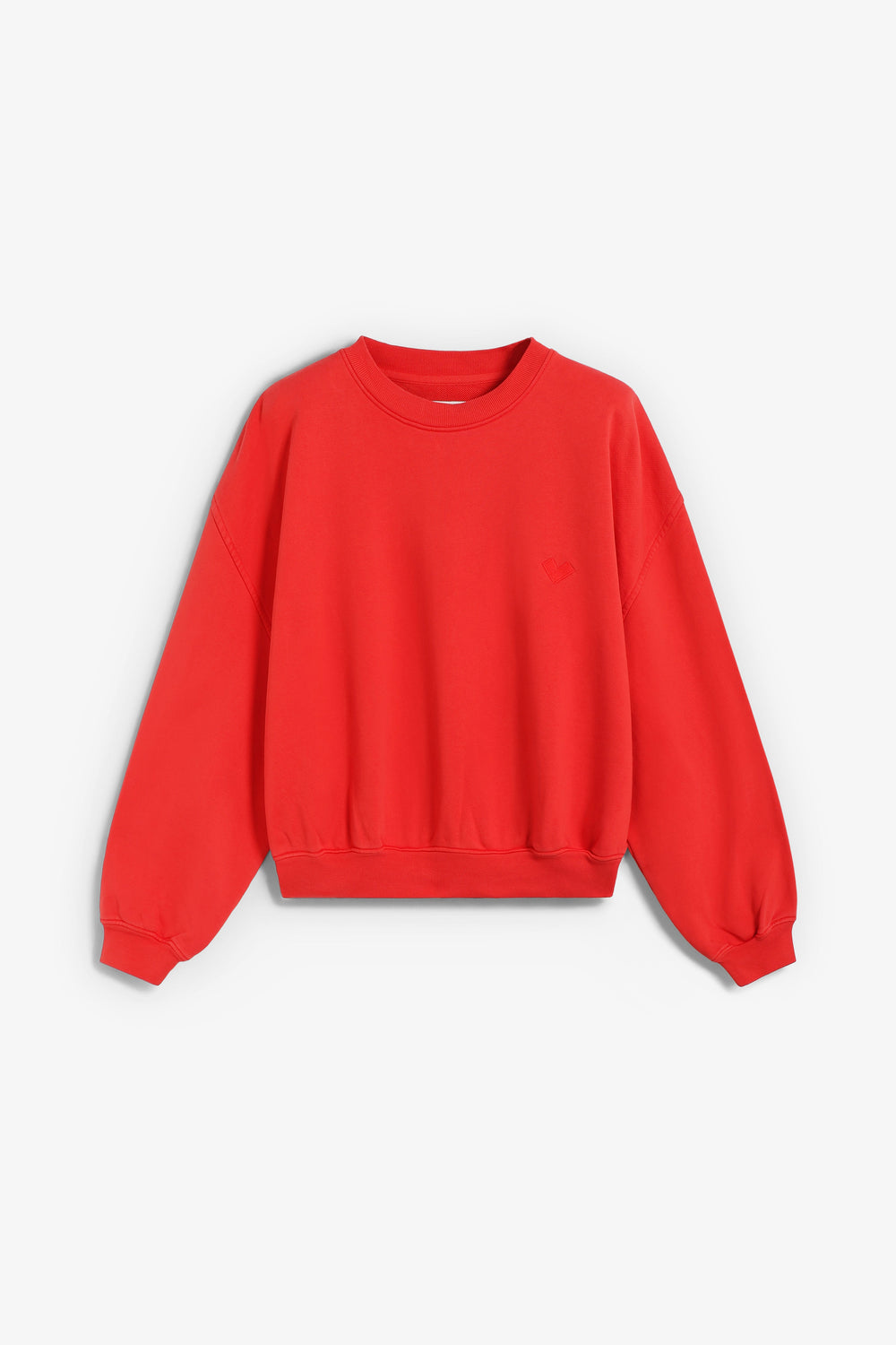 Sweatshirt Bellerose confecionada em 100% algodão orgânico e corte descontraído e curto. Com ombros descaídos, manga comprida e bordado de coração no peito. Pormenor de debruns canelados.
