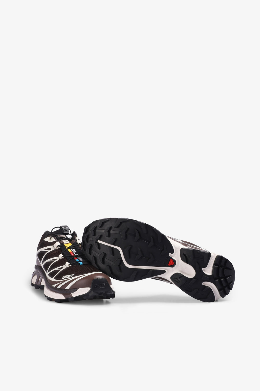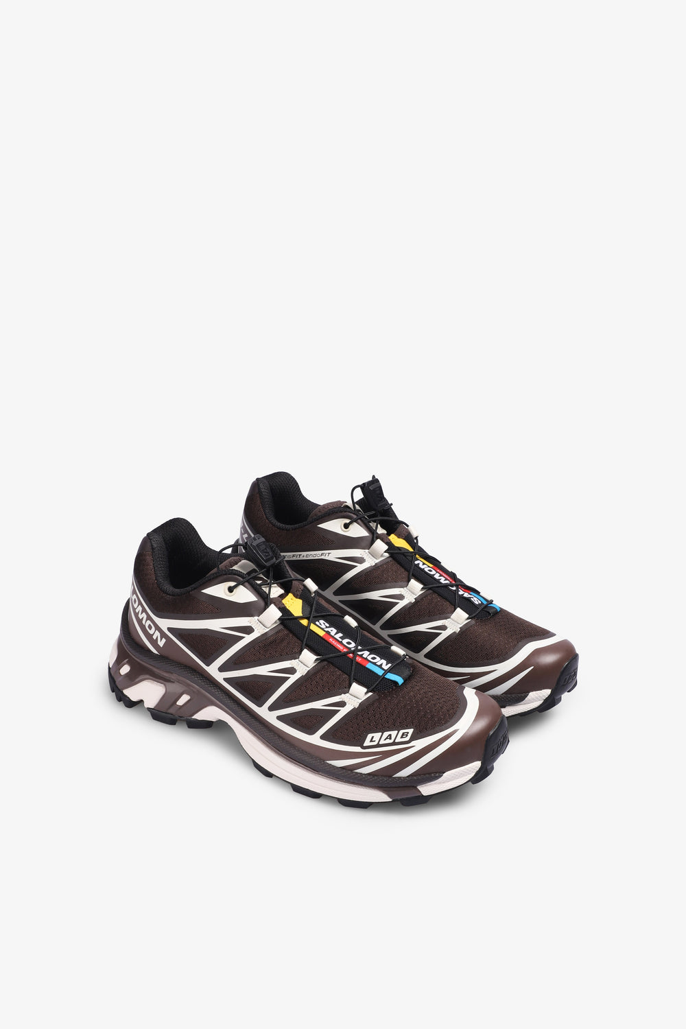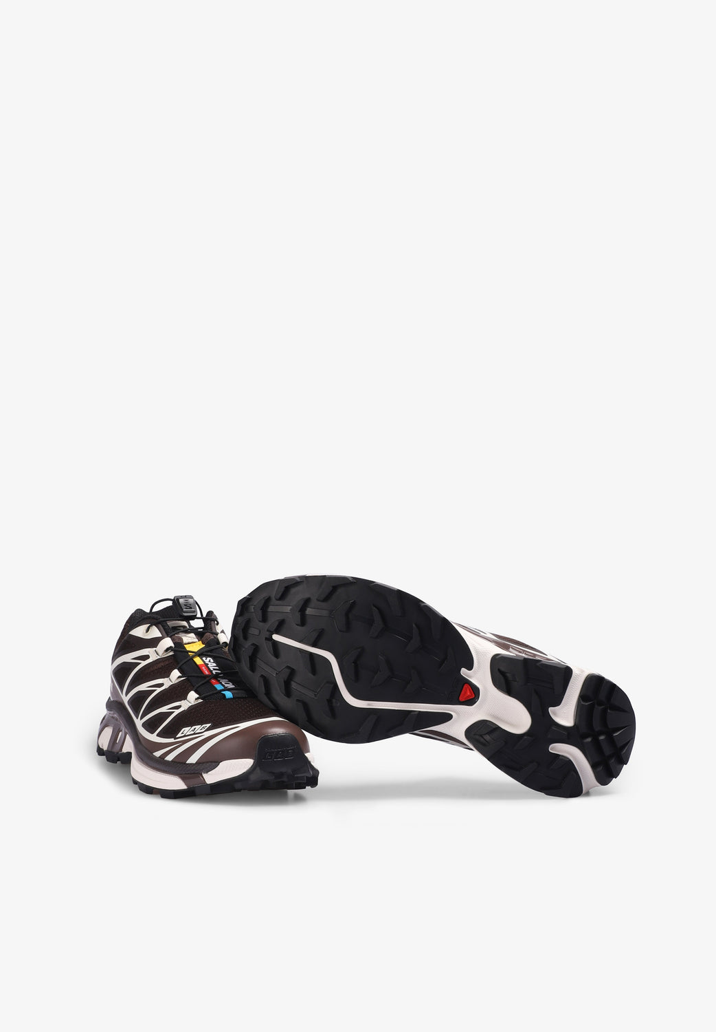 Sapatilhas Salomon fabricadas em tecido de rede e material TPU resistente à abrasão com forro respirável e sola de borracha.