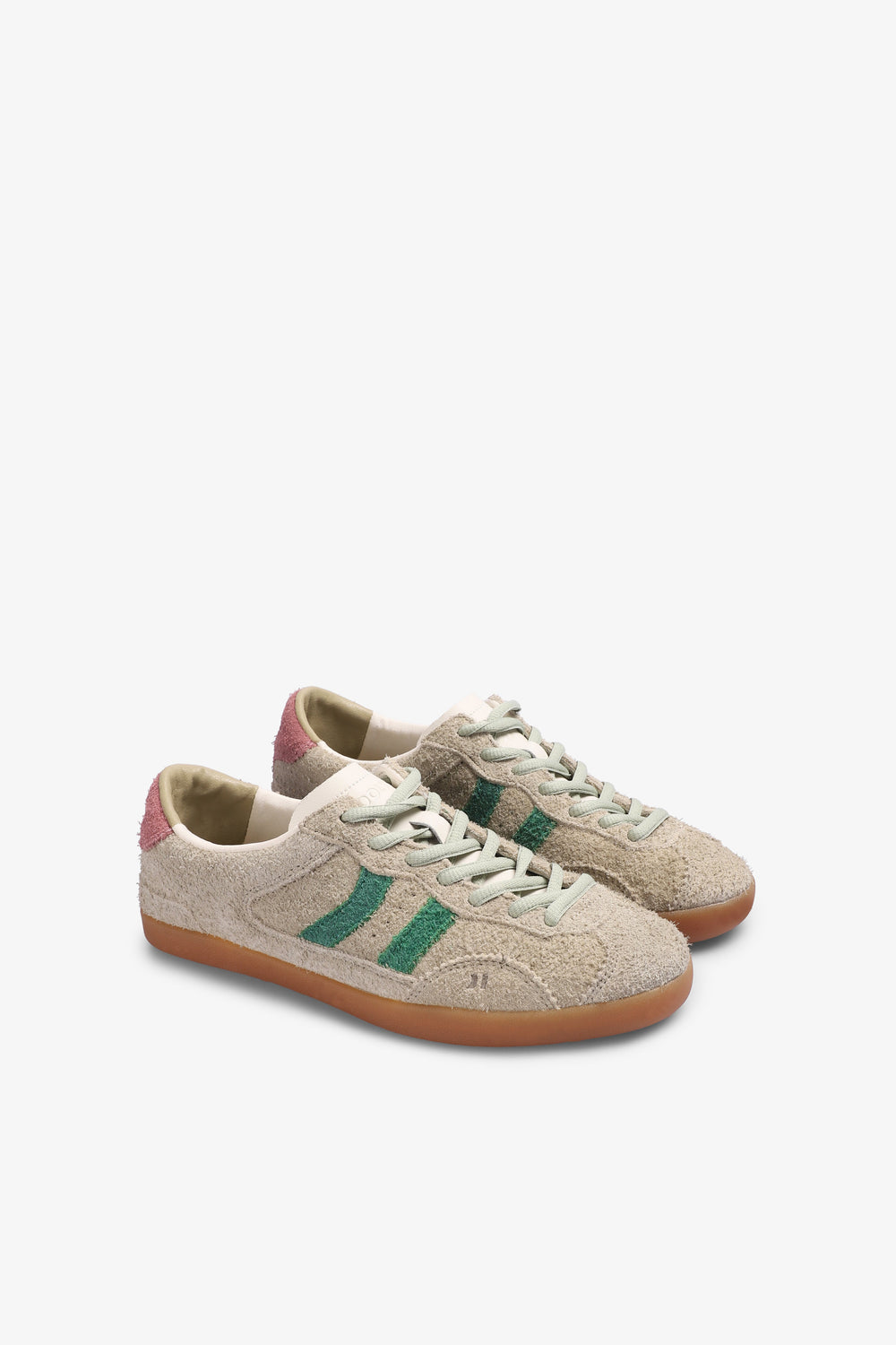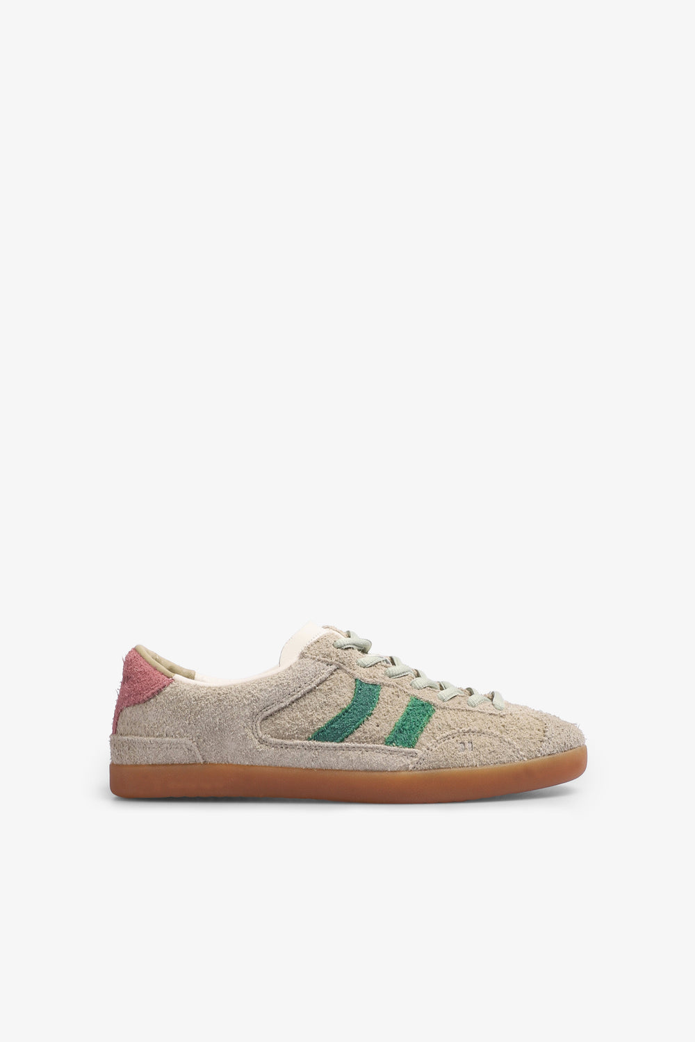 Sapatilhas Coolway confecionadas em pele tipo croute combinado com nylon. Corte simples e clássico com fecho de cordões. A peça do calcanhar e o logótipo contrastam em termos de cor e textura. Possui uma palmilha de foam acolchoada com um design multilogo, forro de pele e uma sola de cauchu leve em cores mel.