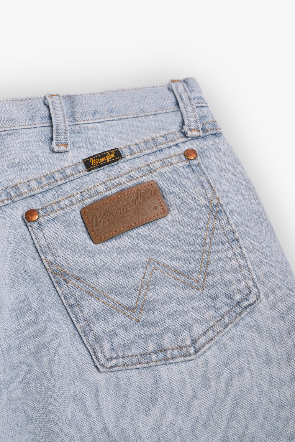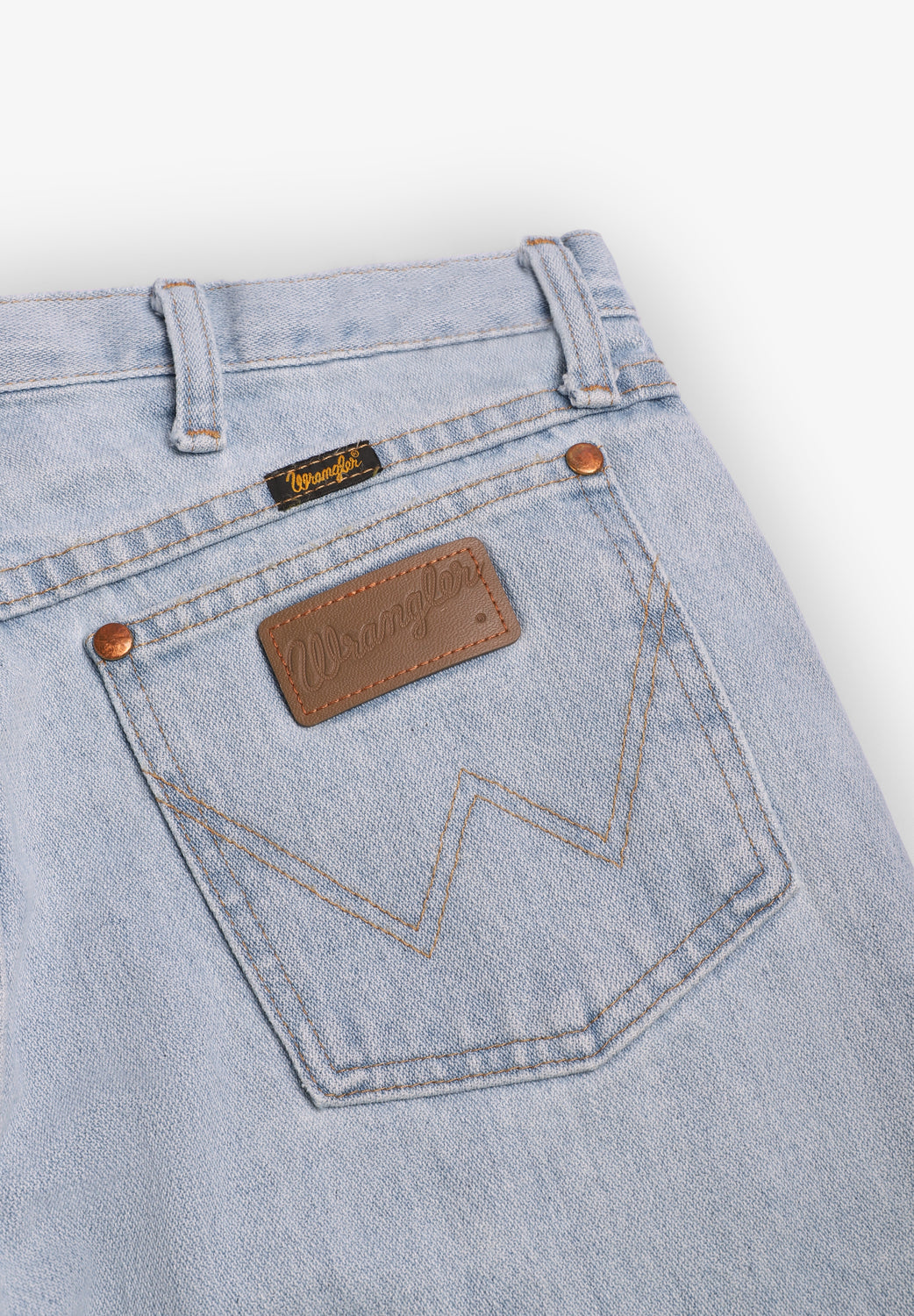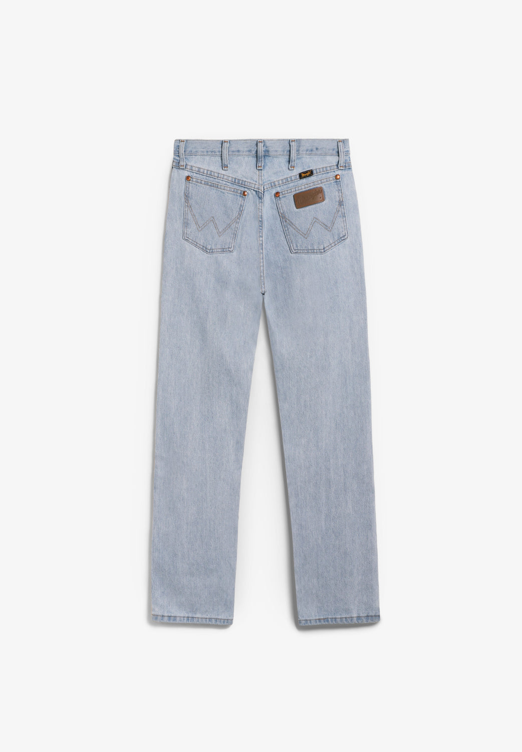 Jeans Wrangler confecionadas num resistente tecido denim de 13 onças (368 g) de 100% algodão sem elasticidade. Concebidas com cintura, coxa e joelho de corte regular e uma ligeira abertura para se ajustarem bem por cima do calçado. Pormenor de cinco bolsos, costura em forma de "W" e sete presilhas.