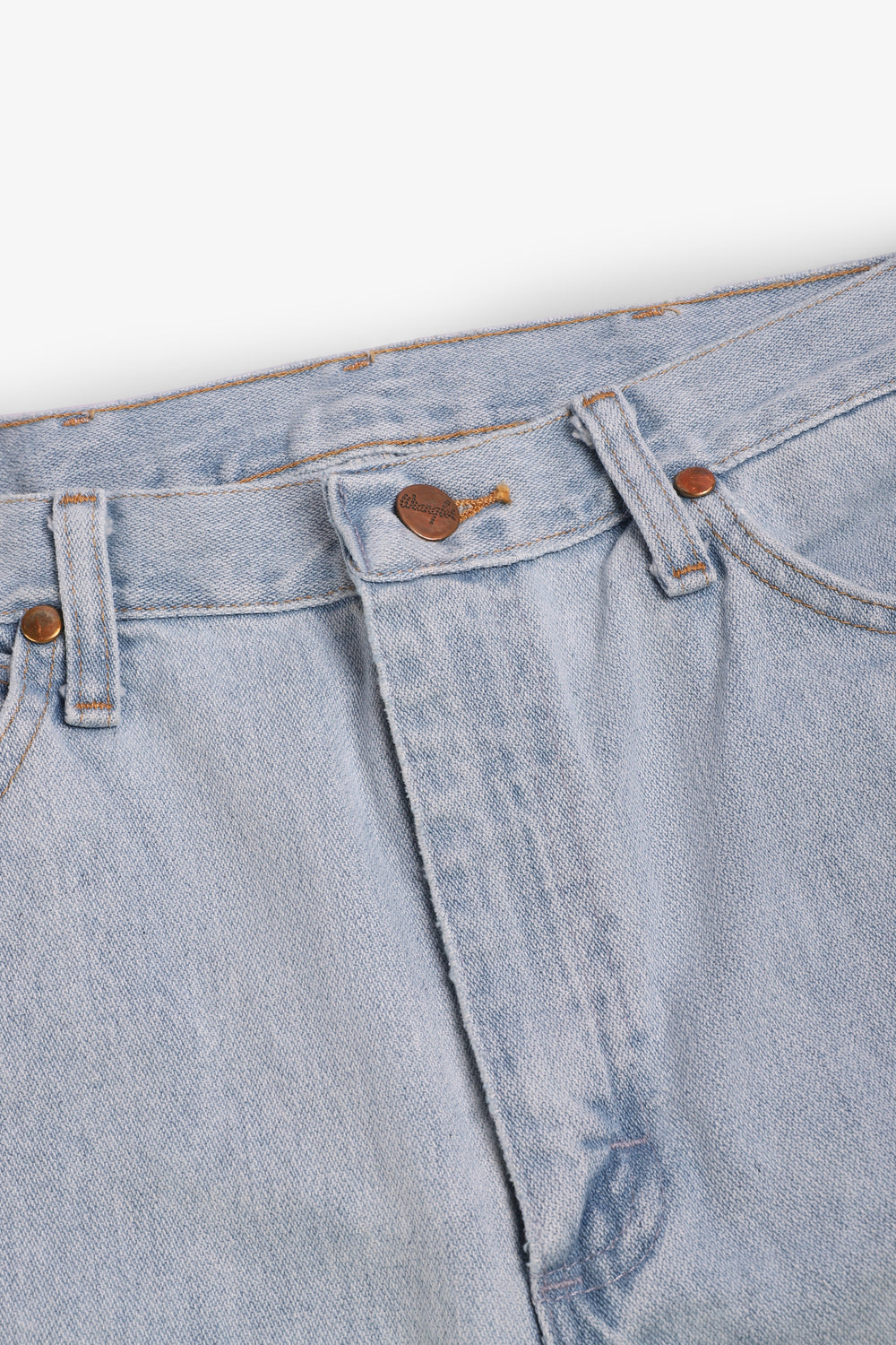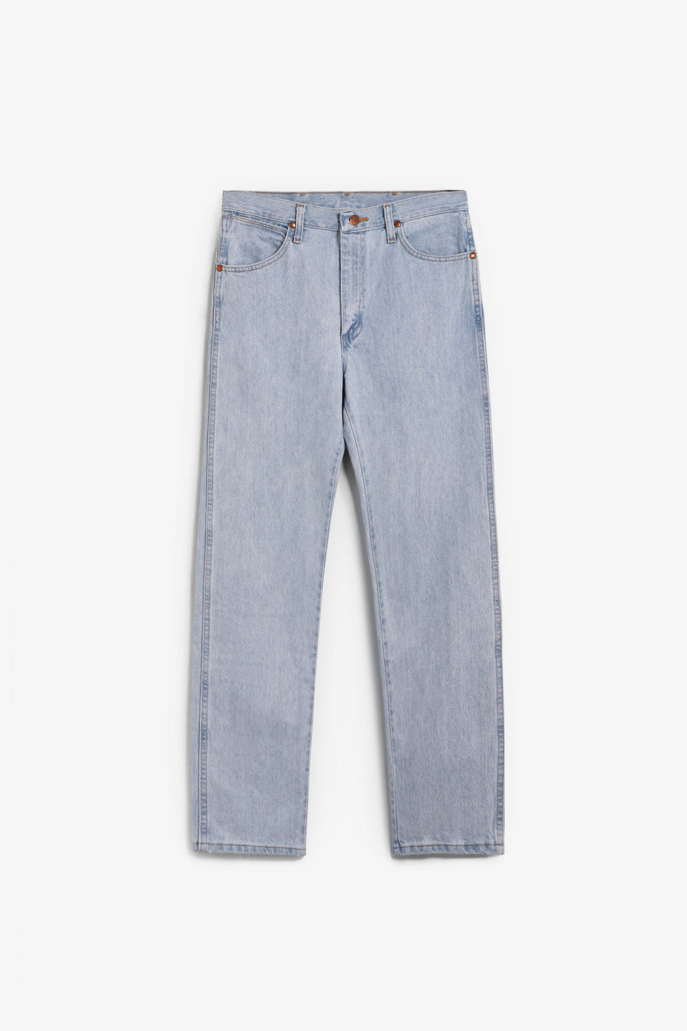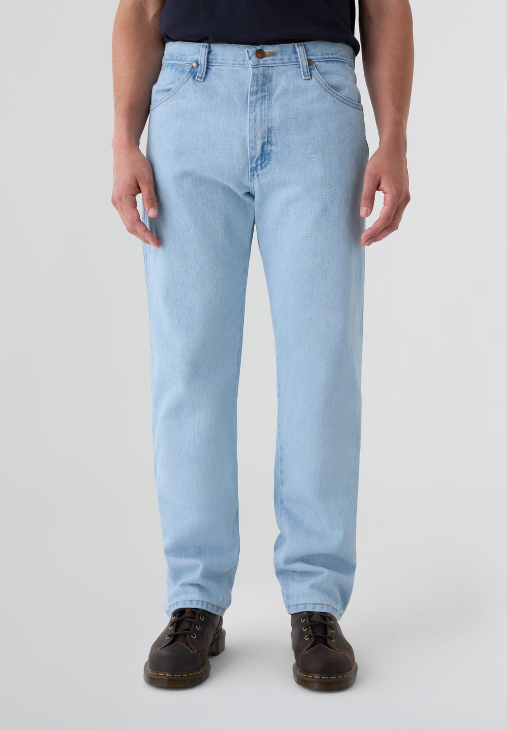 Jeans Wrangler confecionadas num resistente tecido denim de 13 onças (368 g) de 100% algodão sem elasticidade. Concebidas com cintura, coxa e joelho de corte regular e uma ligeira abertura para se ajustarem bem por cima do calçado. Pormenor de cinco bolsos, costura em forma de "W" e sete presilhas.