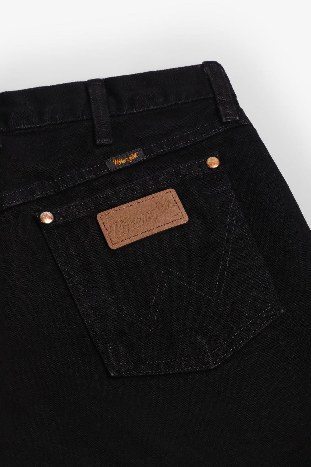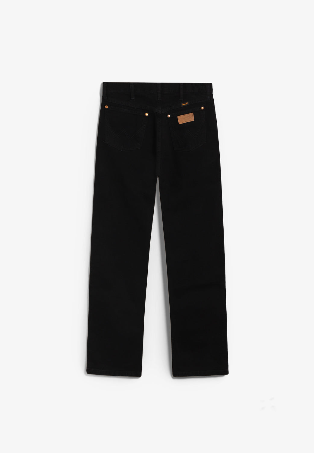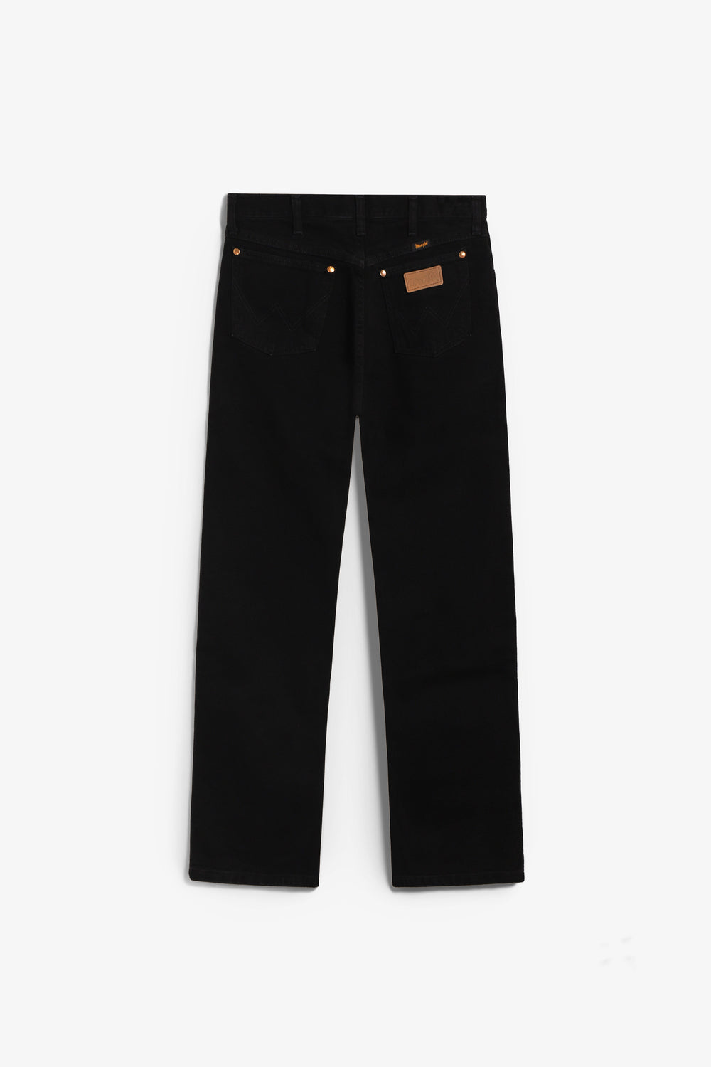 Jeans Wrangler confecionadas num resistente tecido denim de 13 onças (368 g) de 100% algodão sem elasticidade. Concebidas com cintura, coxa e joelho de corte regular e uma ligeira abertura para se ajustarem bem por cima do calçado. Pormenor de cinco bolsos, costura em forma de "W" e sete presilhas.