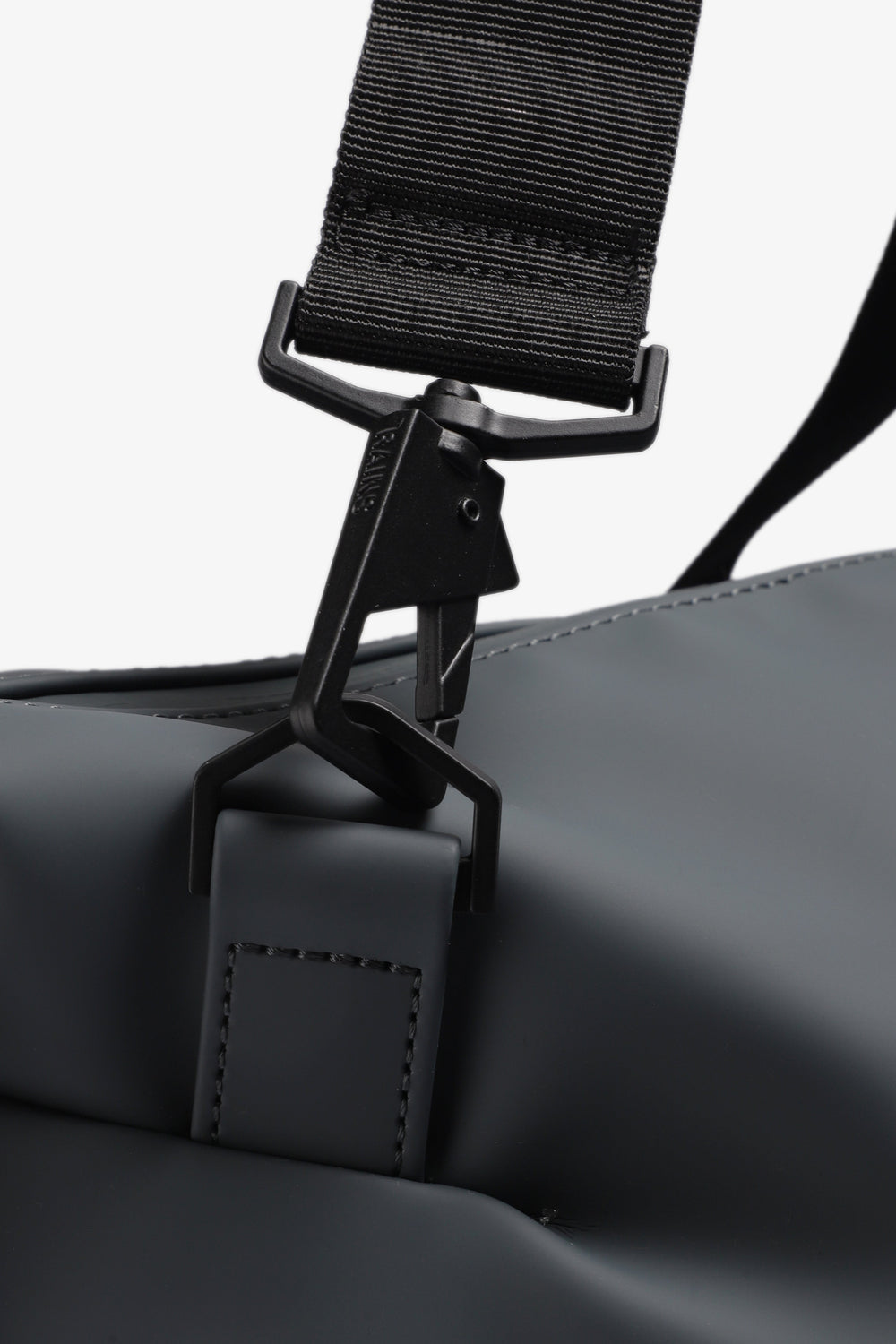 Bolsa Rains confecionada em tecido 100% poliéster. Possui um acabamento impermeável, um fecho de correr integral com revestimento, correias de ajuste laterais e alças de transporte tipo cilha com uma confortável peça envolvente para segurar, juntamente com argolas para prender a correia removível para o ombro que vem incluída. Pormenor de logótipo da marca gravado.