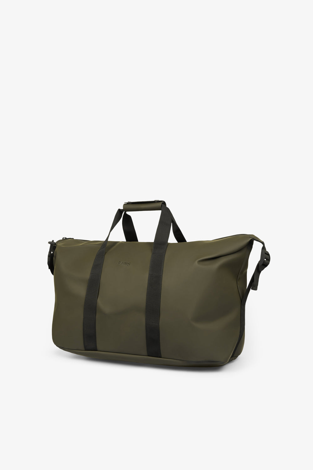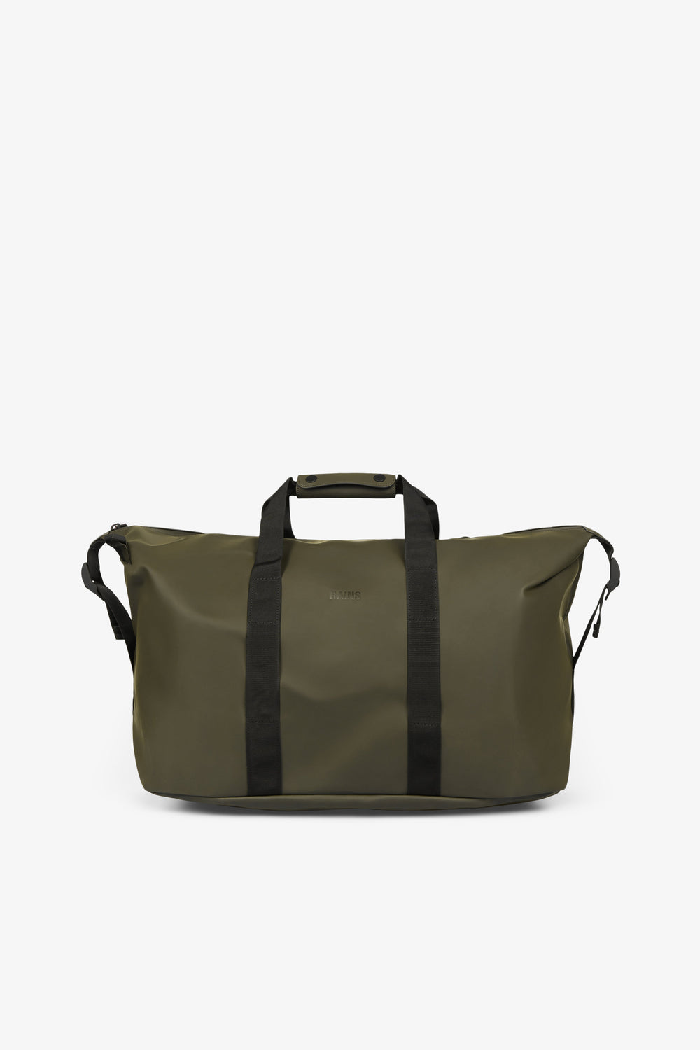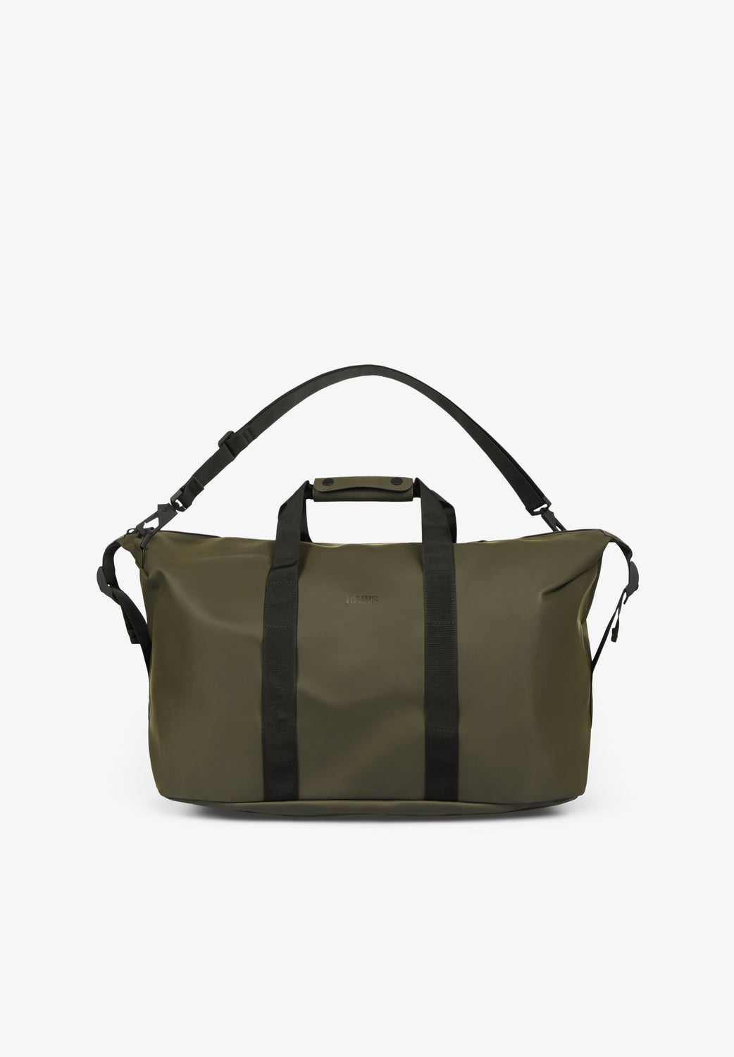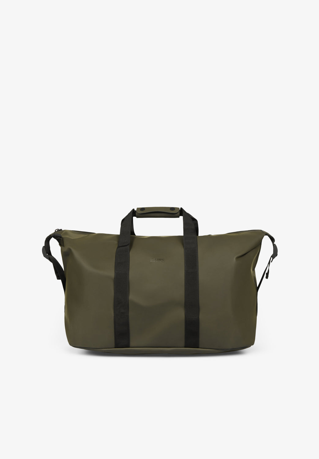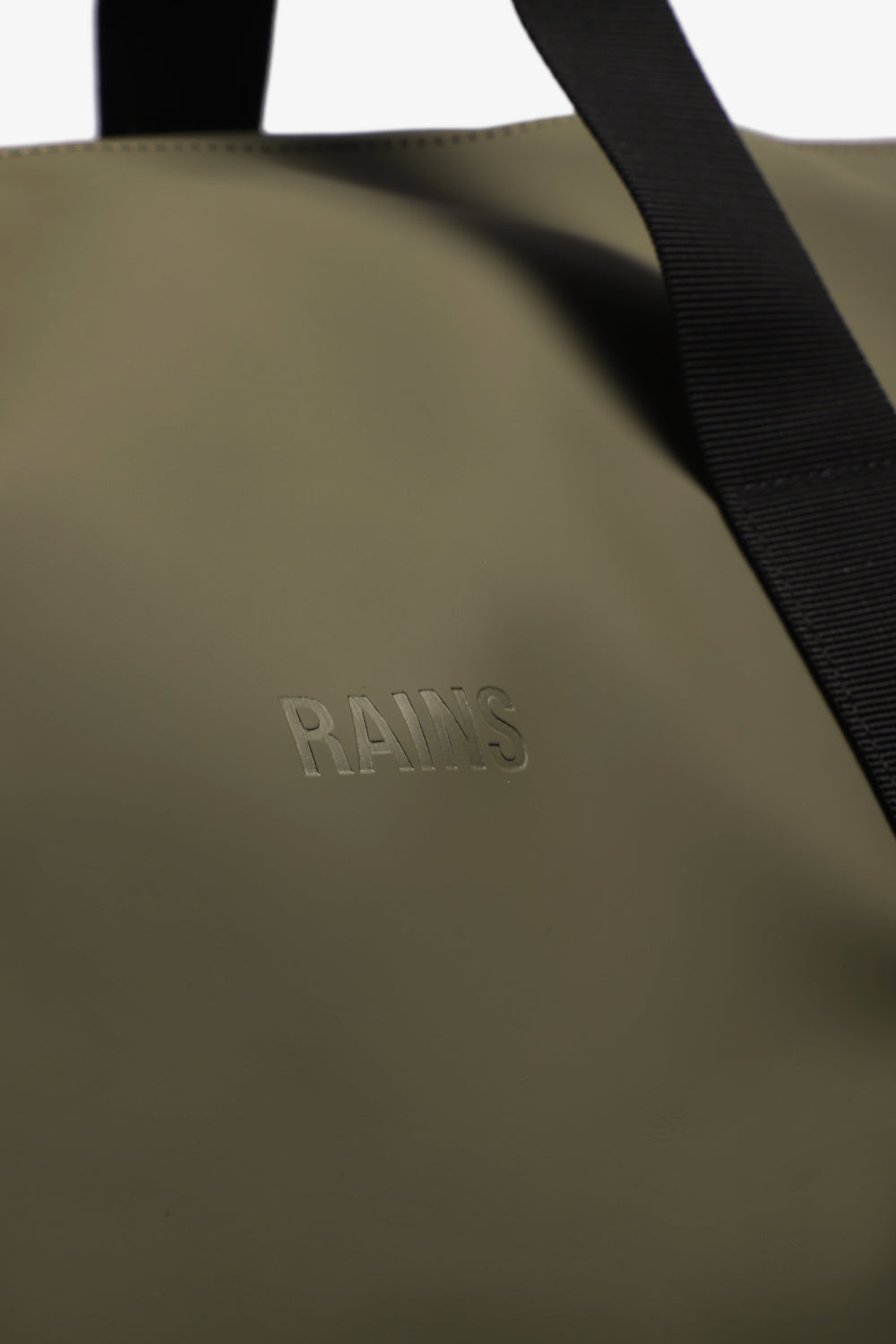 Bolsa Rains confecionada em tecido 100% poliéster. Possui um acabamento impermeável, um fecho de correr integral com revestimento, correias de ajuste laterais e alças de transporte tipo cilha com uma confortável peça envolvente para segurar, juntamente com argolas para prender a correia removível para o ombro que vem incluída. Pormenor de logótipo da marca gravado.