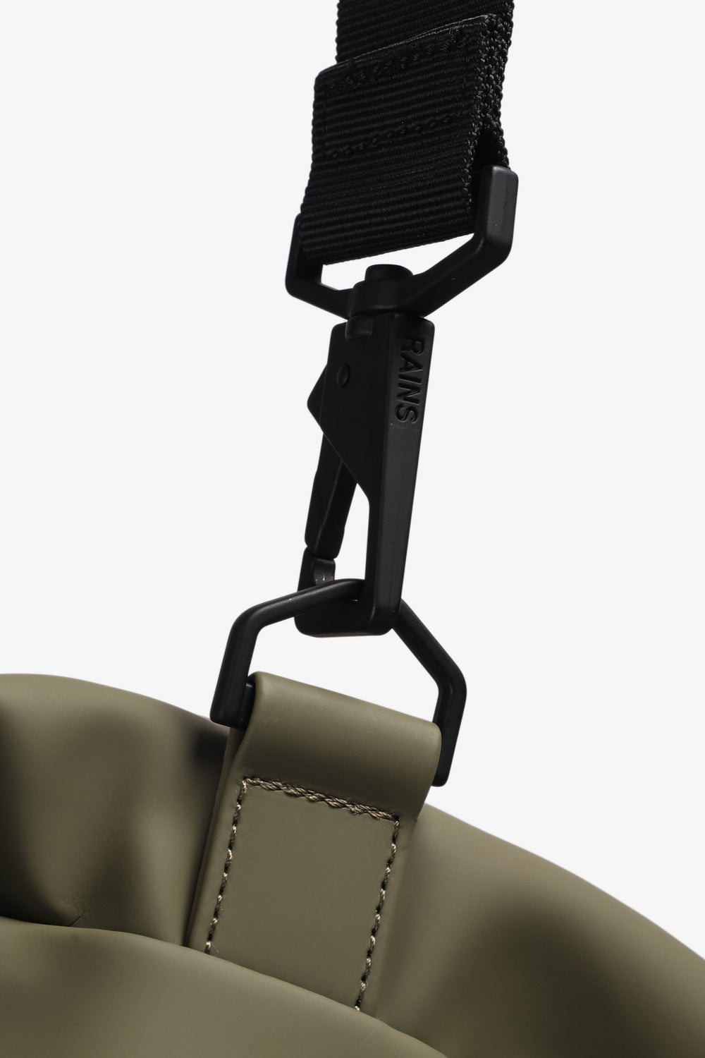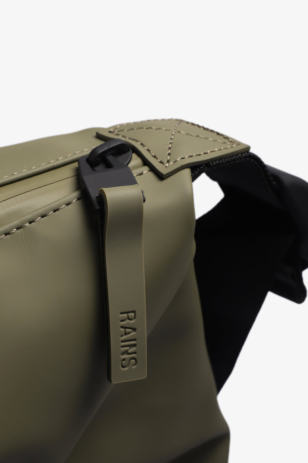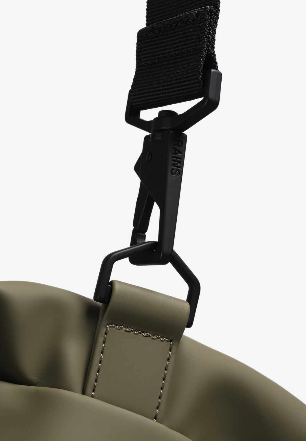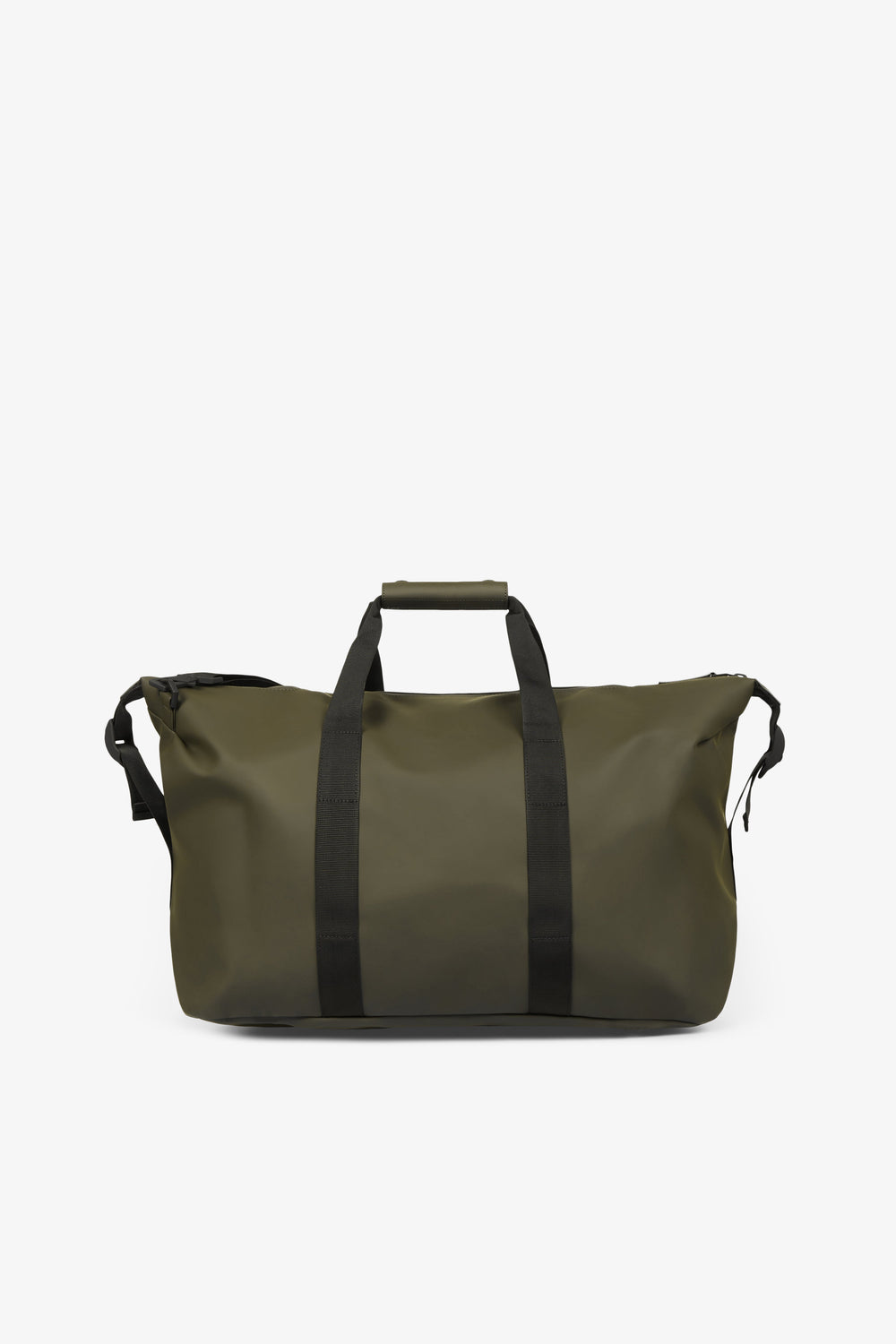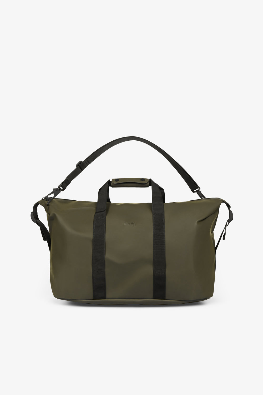 Bolsa Rains confecionada em tecido 100% poliéster. Possui um acabamento impermeável, um fecho de correr integral com revestimento, correias de ajuste laterais e alças de transporte tipo cilha com uma confortável peça envolvente para segurar, juntamente com argolas para prender a correia removível para o ombro que vem incluída. Pormenor de logótipo da marca gravado.