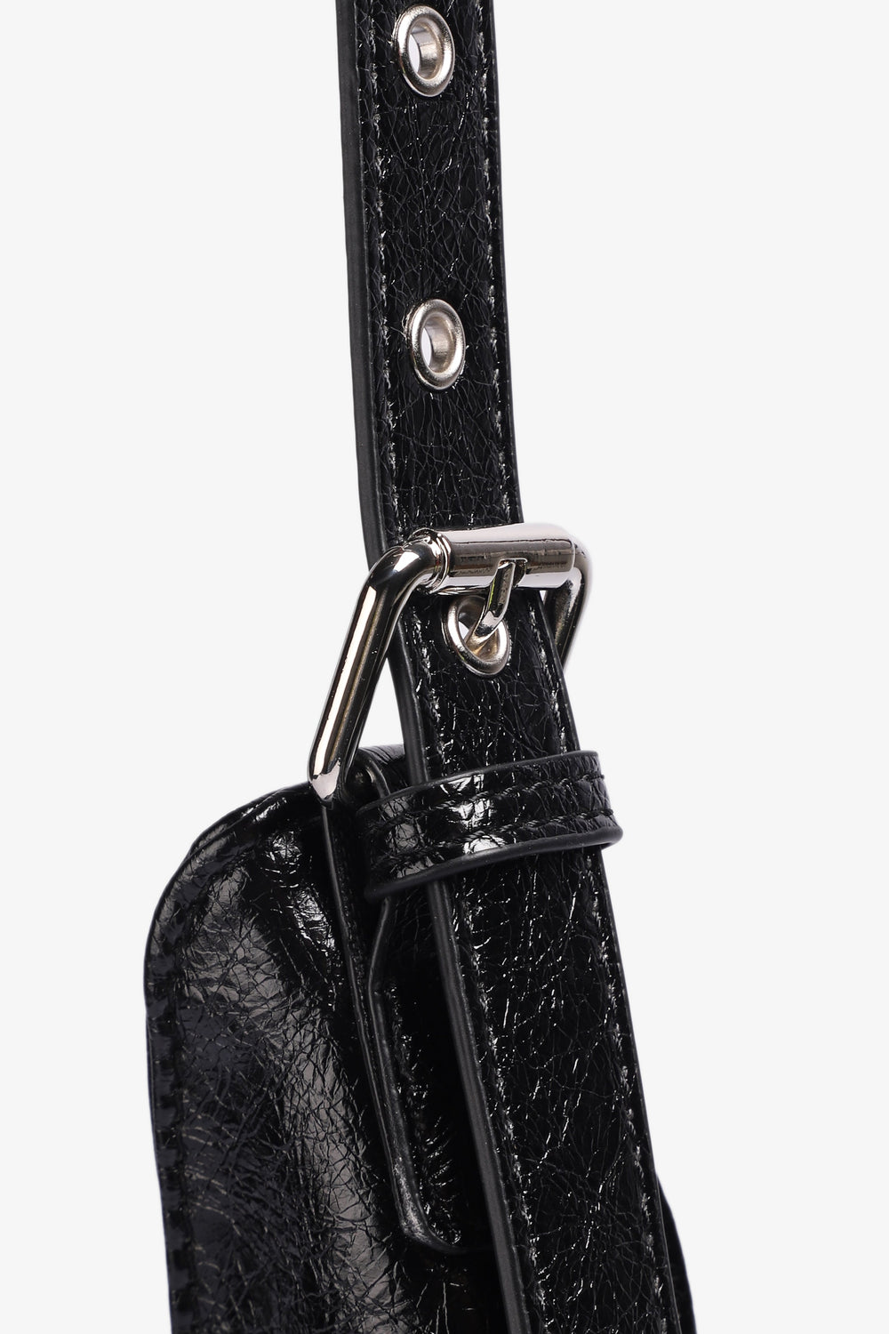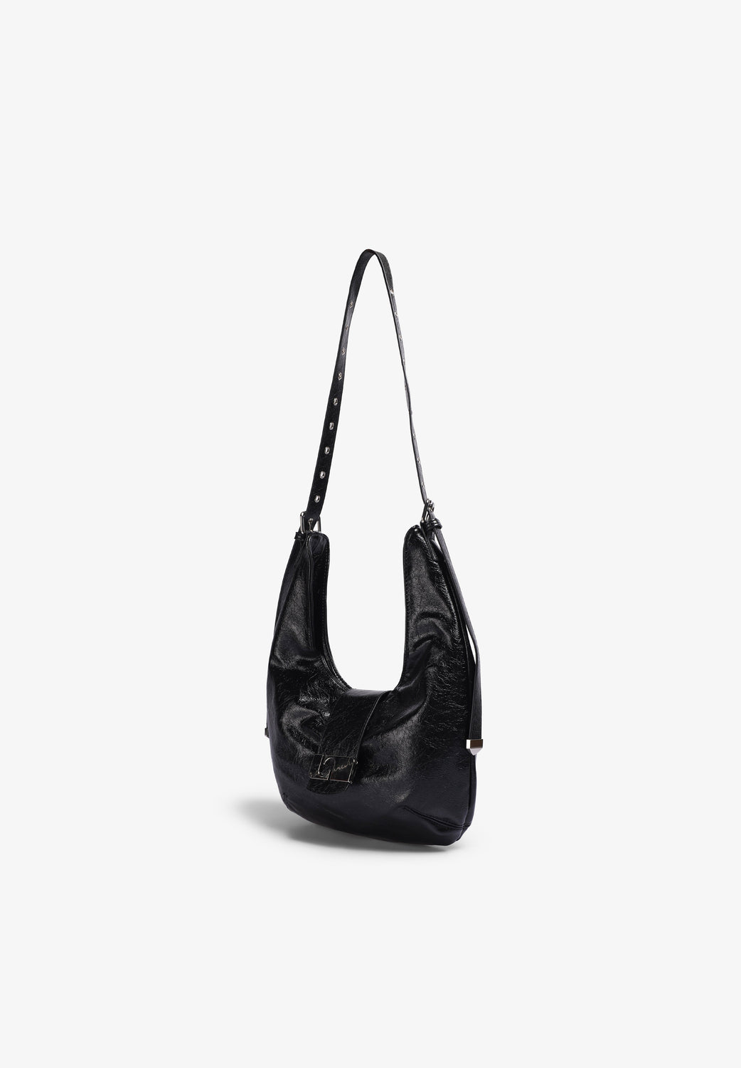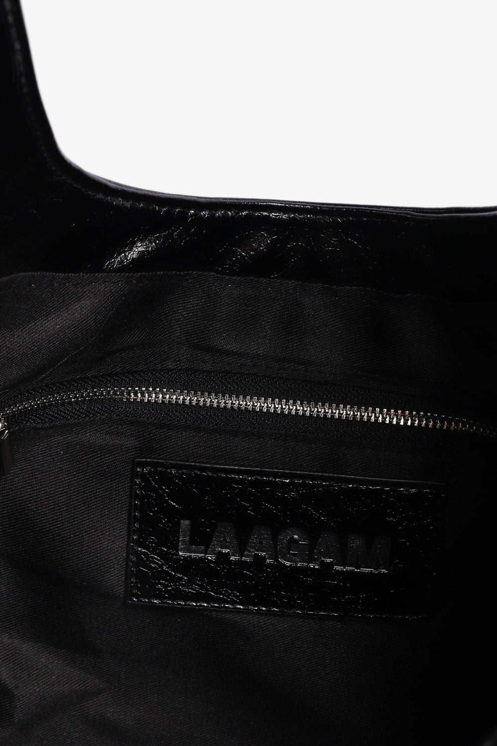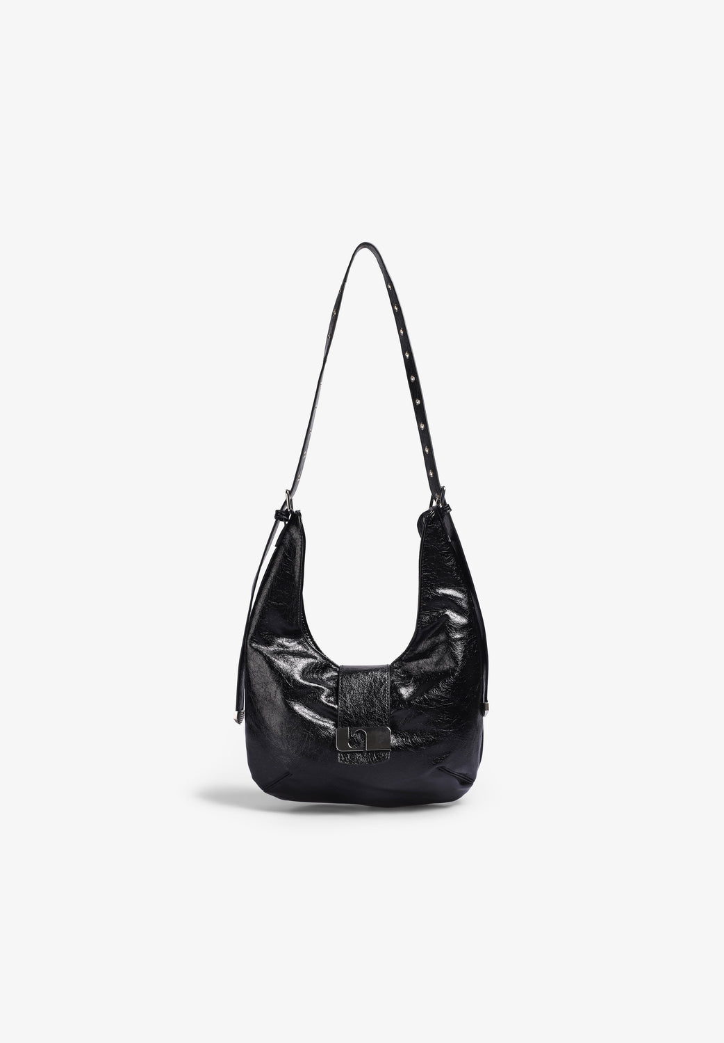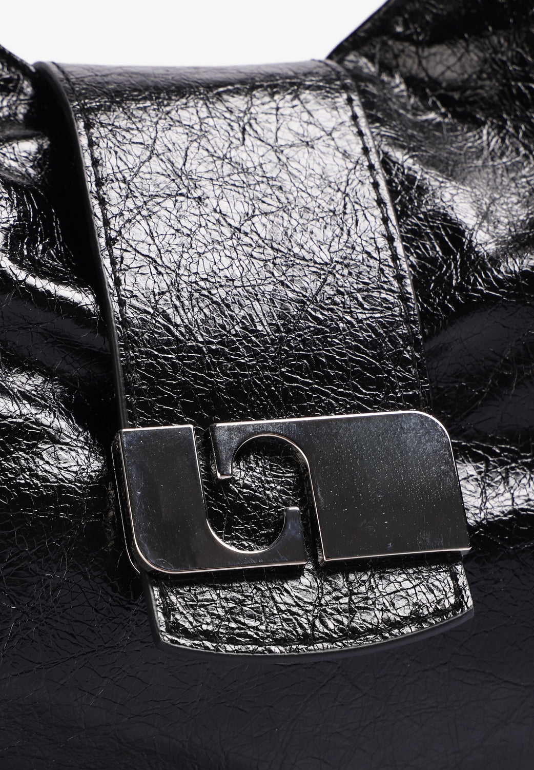 Bolsa Laagam confecionada em 100% algodão e efeito pele. Conta com pormenor do logótipo metálico à frente, alça de ombro ajustável com ilhós metálicos, fecho magnético e bolso interior com fecho de correr.