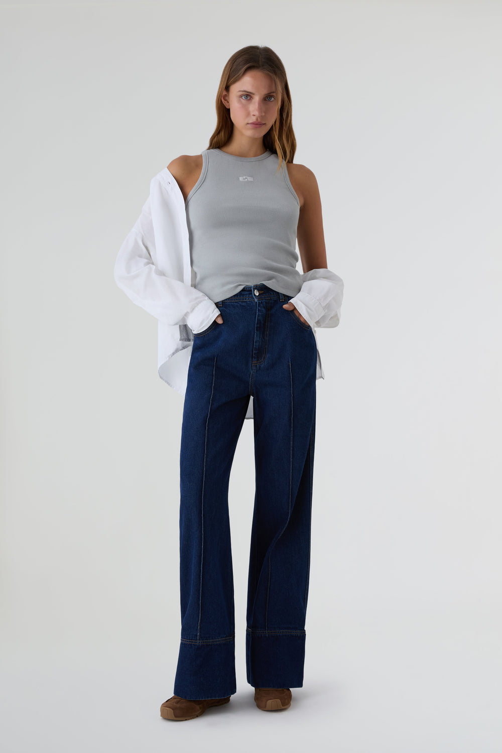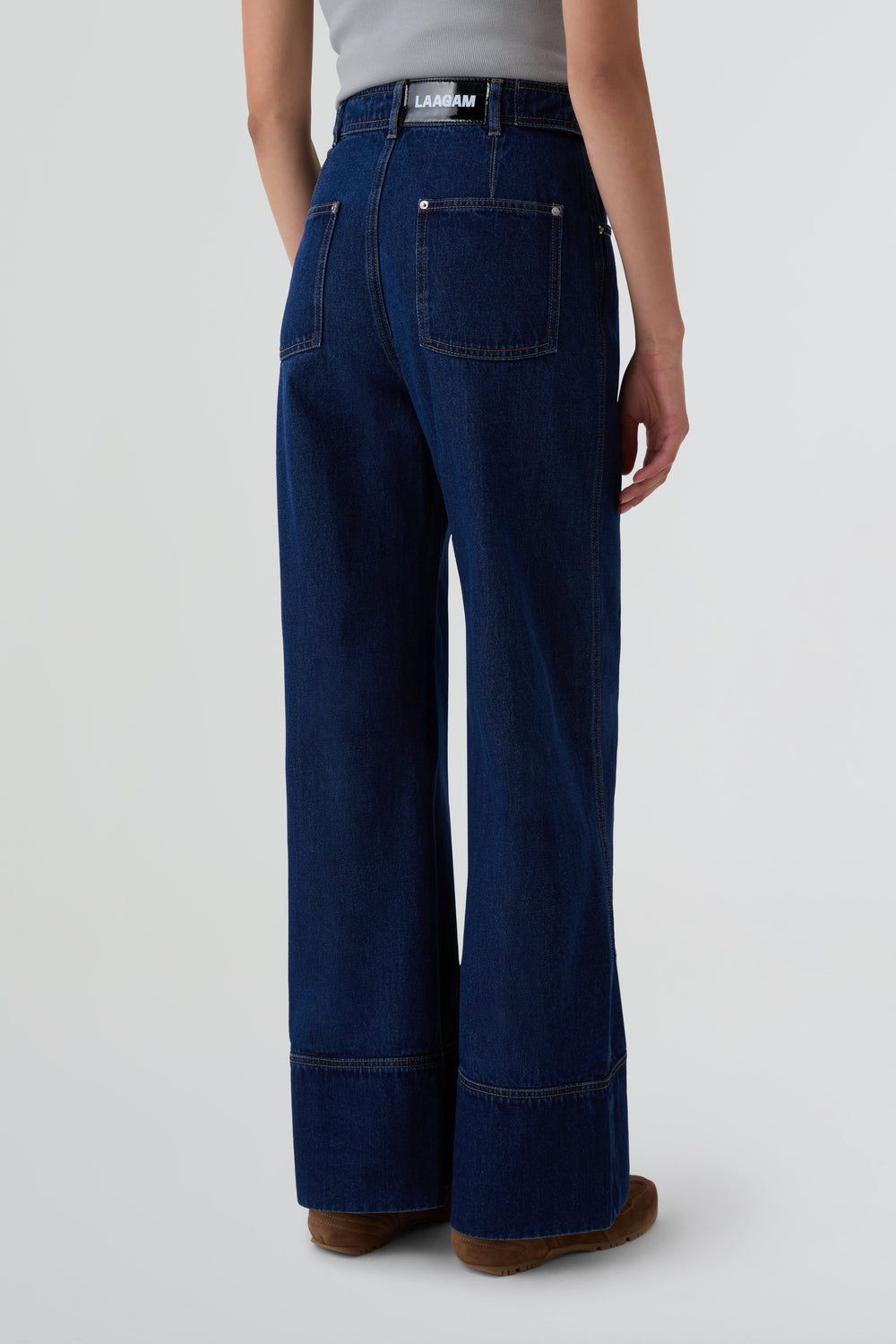 Calças jeans Laagam confecionadas em 100% algodão. Com uma cintura subida e uma perneira larga. Cintura com presilha, grandes botões prata metalizada e fecho à frente com fecho de correr e botão metálico e bolsos traseiros.