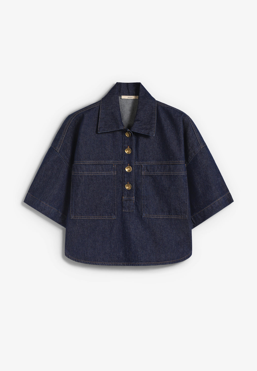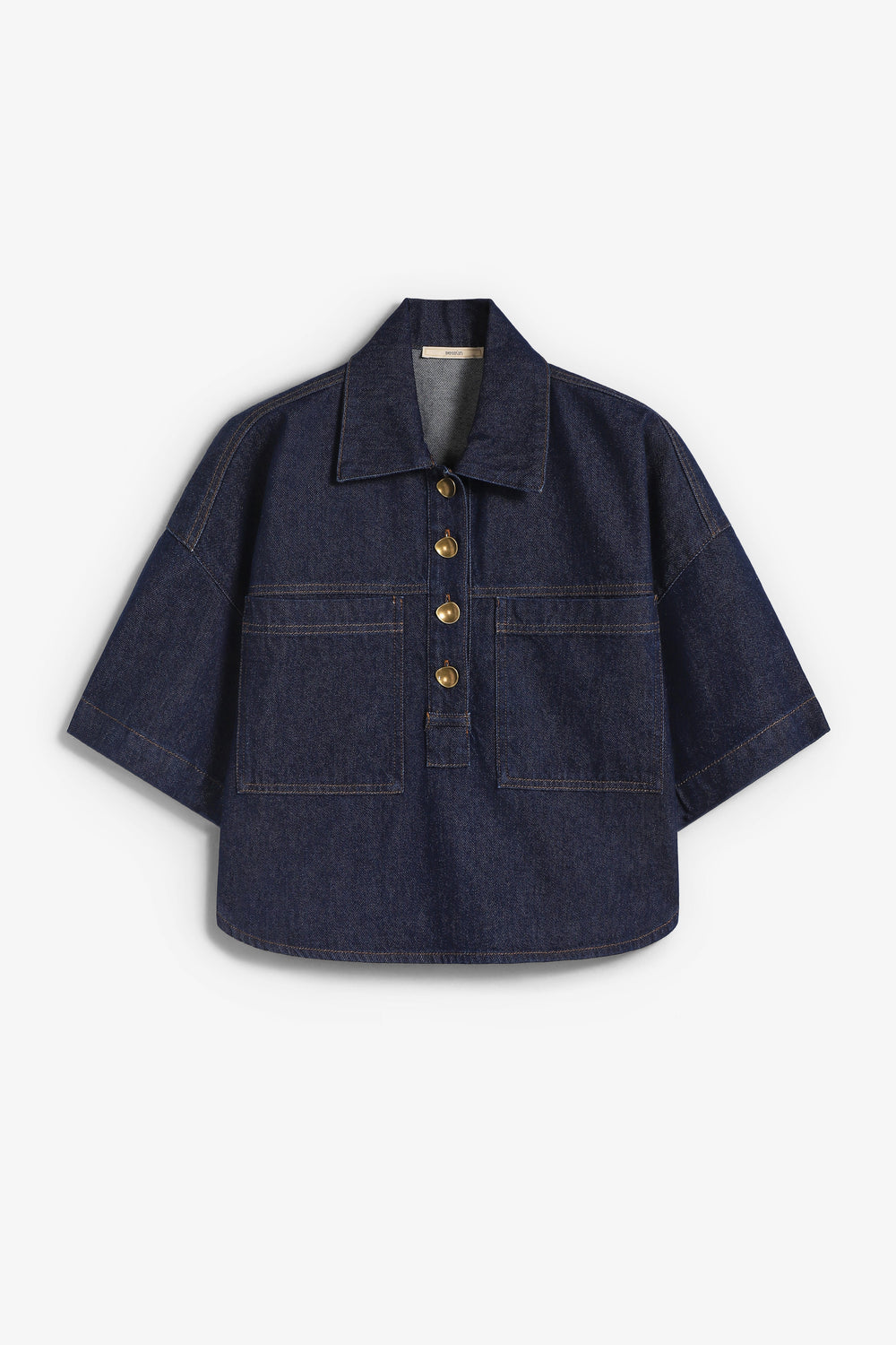 Camisa estilo camisa polo Sessun confecionada em 100% algodão. Com carcela de camisa polo com botões em contraste tipo jóia, manga curta, bolsos de remendo com costura em contraste e pregas planas nas costas.