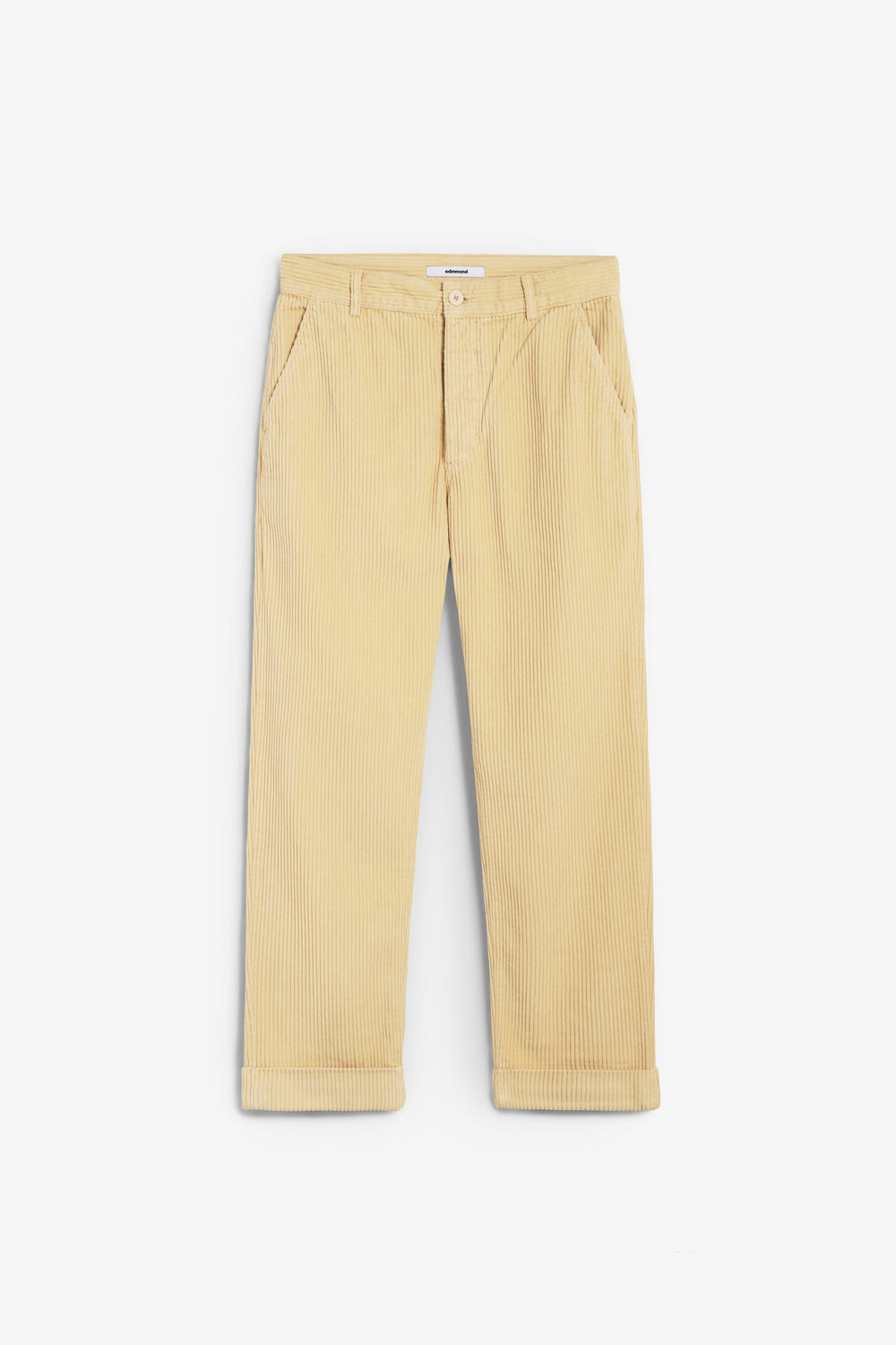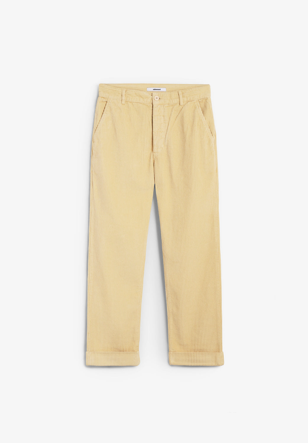 Calças Edmmond Studios confecionadas em 100% algodão e corte carrot. Com bolsos laterais, dois bolsos traseiros com fecho de botão, carcela com botões e bainha enrolada. Pormenor de etiqueta bordada na parte de trás.