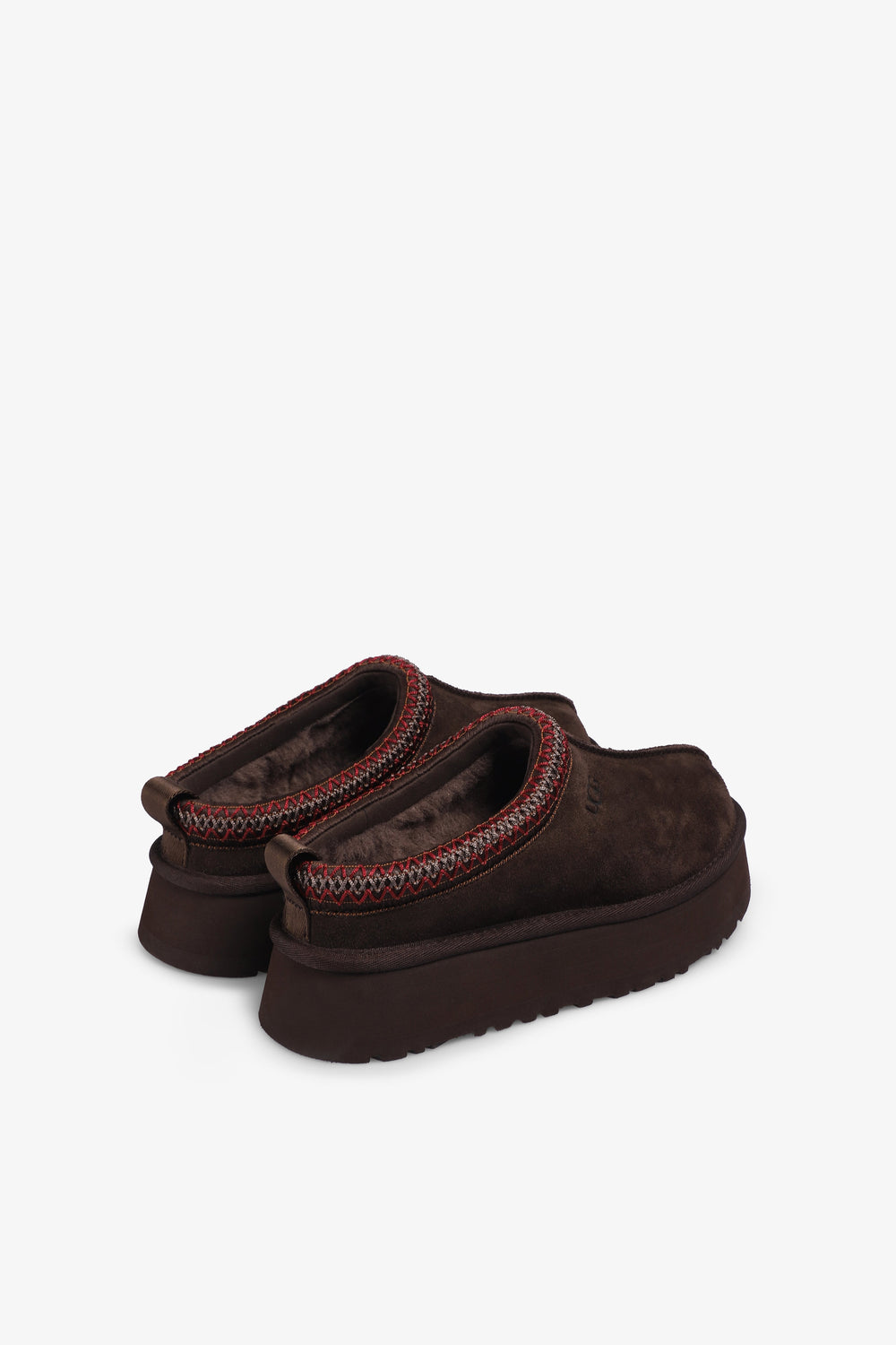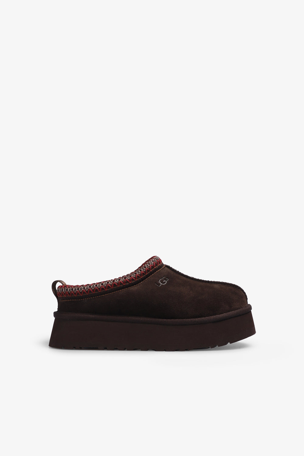 Pantufa UGG confecionada em camurça macia forrada com tecido de pele de ovelha e a sola de EVA de cana-de-açúcar com forma balançada para facilitar os movimentos. Pormenor trançado UGGbraid feito com fibras de poliéster 100% recycled e presilha na parte de trás. Logótipo termogravado e etiqueta cosida na palmilha.