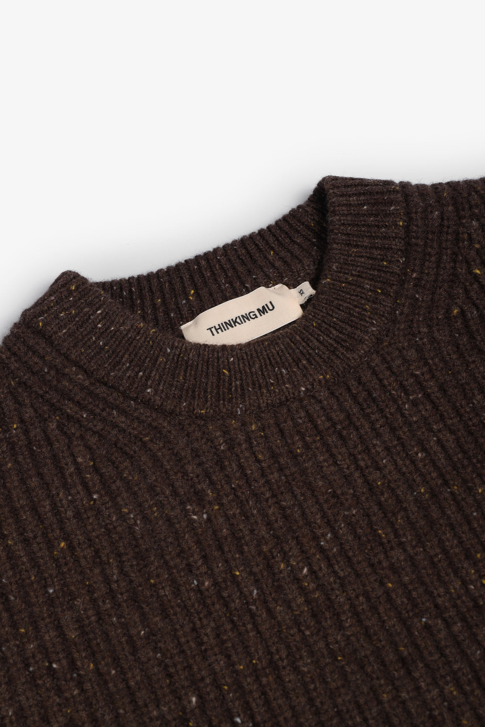 THINKING MU | BROWN CARMEN KNITTED SWEATER