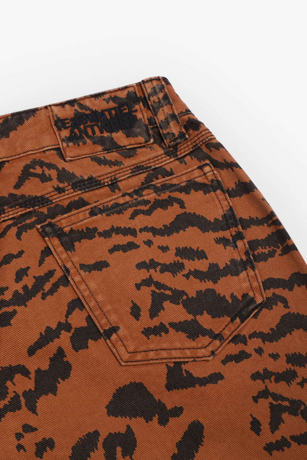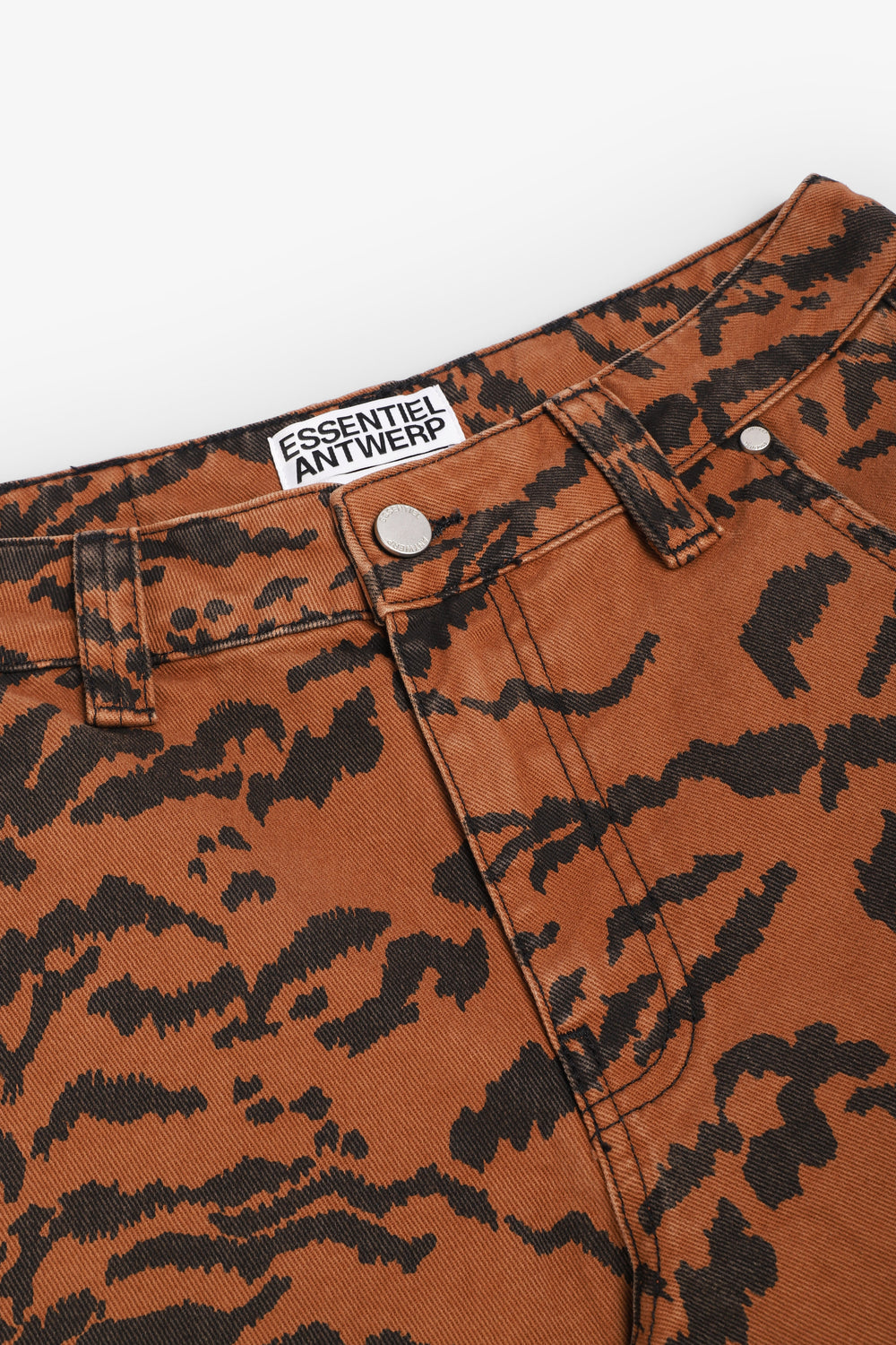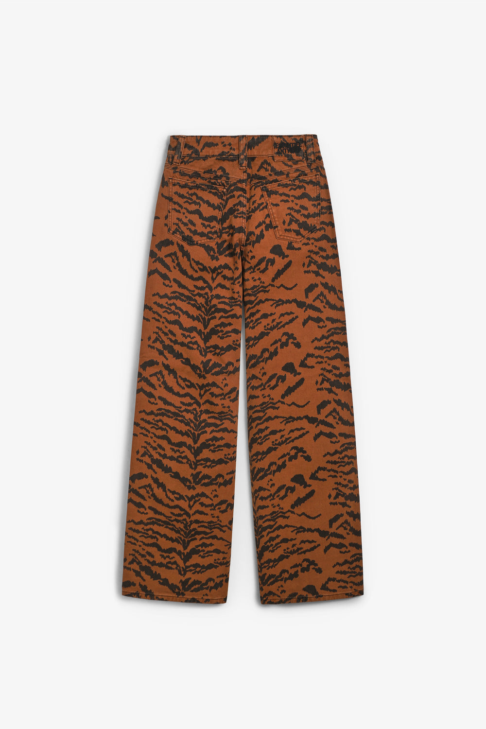 Calças jeans Essentiel confecionados em 100% algodão e concebidos com uma silhueta descontraída. Com estampado arrojado de tigre, cintura alta, fecho de correr e botão prateados, cinco bolsos e presilhas para o cinto.