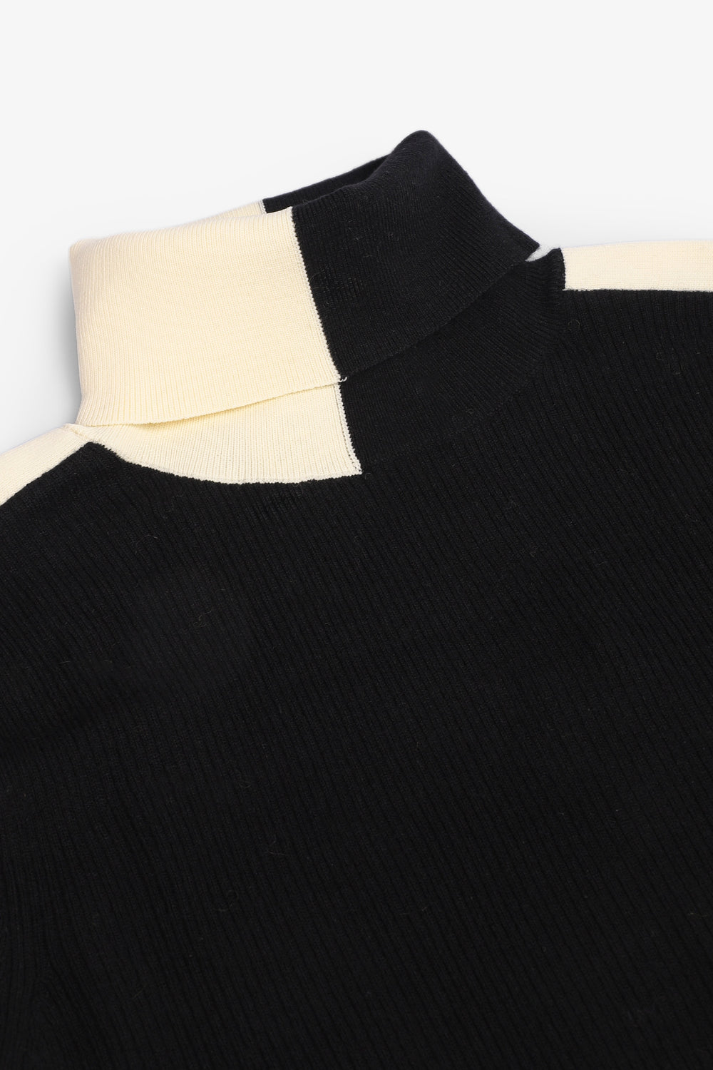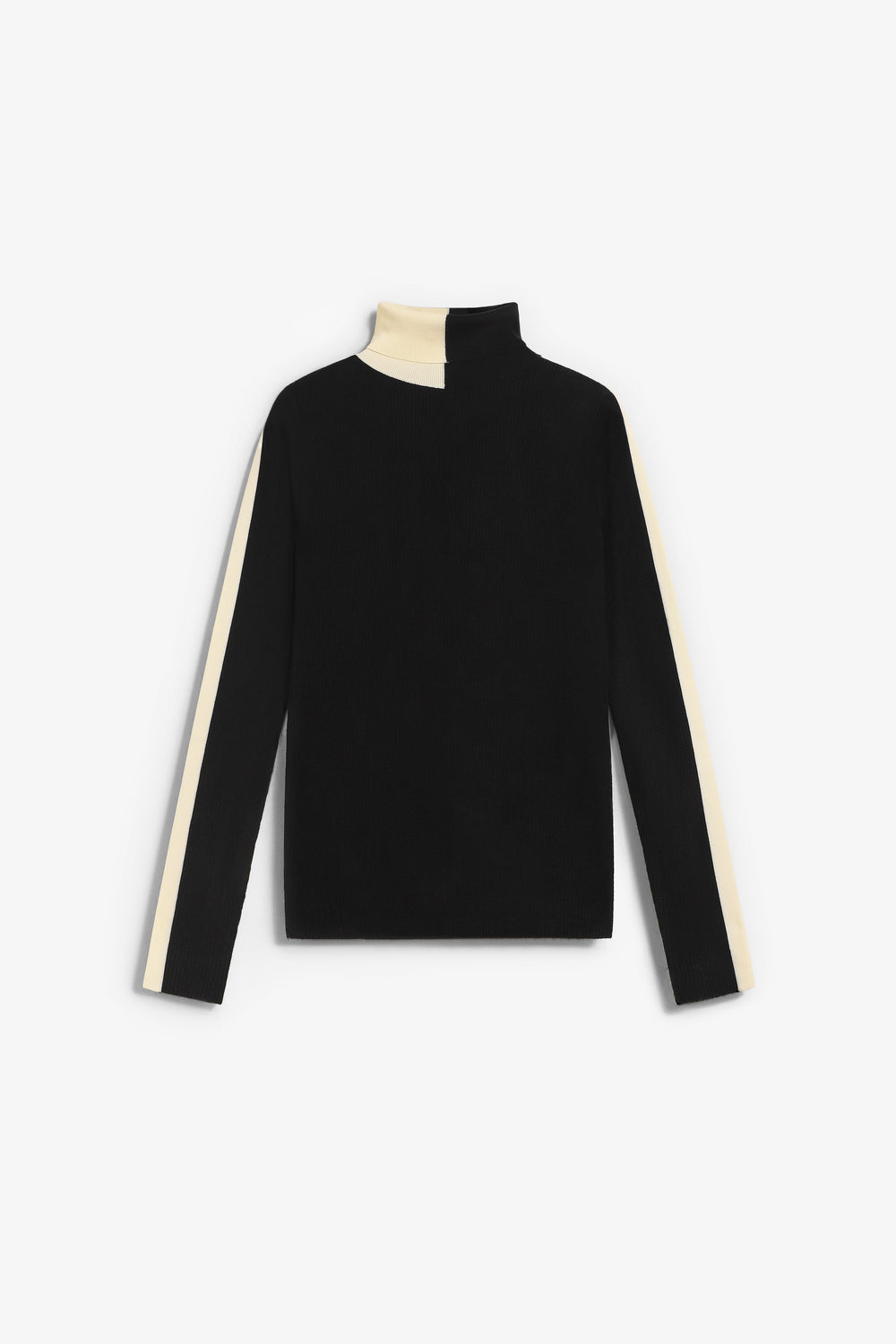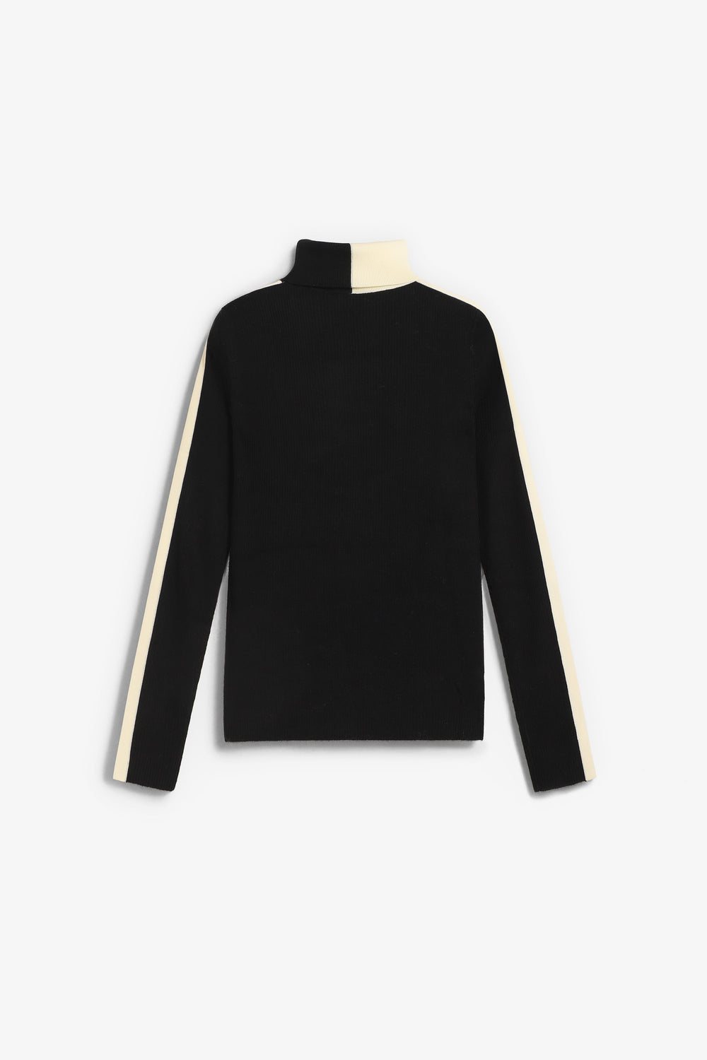 Sweater Essentiel confecionada em 40% acrílico, 27% lã, 22% poliamida e 11% poliéster. Concebida para um ajuste justo, com gola alta e tecido e debrum canelados.