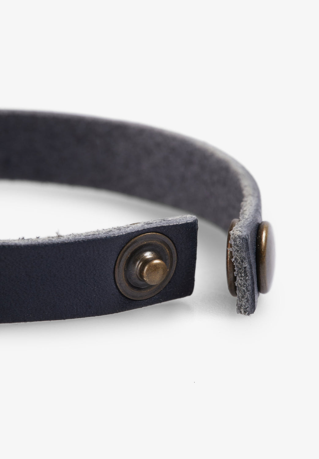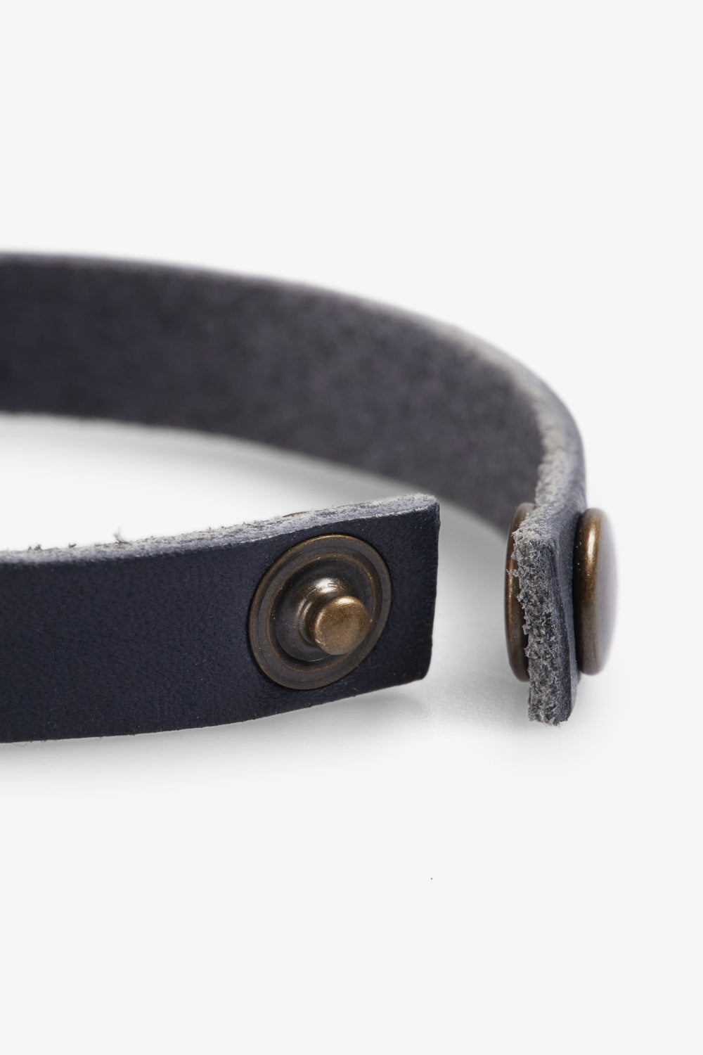 Pulseira confecionada em 100% pele. Pormenor de aplique metálico com skull. Fecho com botão de pressão.