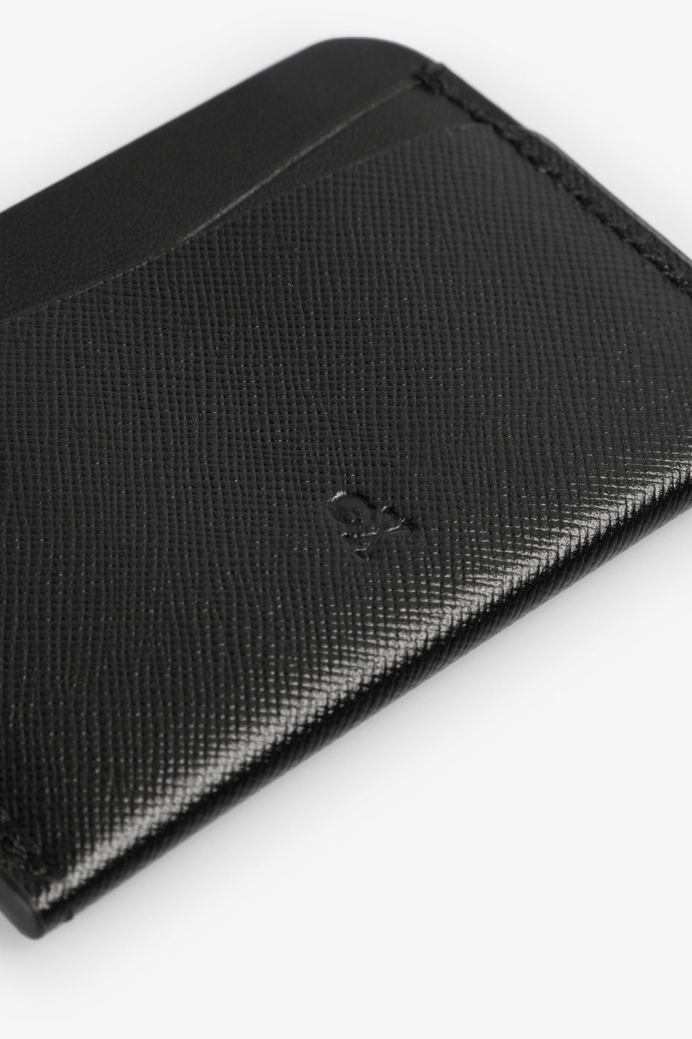 Porta-cartões 100% pele, com gravação de skull e logótipo. Inclui uma ranhura em cada lado.