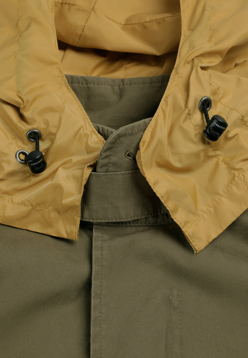 Casaco de estilo militar confecionado em 100% algodão BCI. Gola alta tipo gola mao com tira de fecho. Fecho frontal com zip oculto na bainha com placket. Bolsos superiores com fecho de botão. Bolsos inferiores com fechos de pressão. Punhos ajustáveis. Bolso interior. Capuz em contraste oculto com fecho de correr.