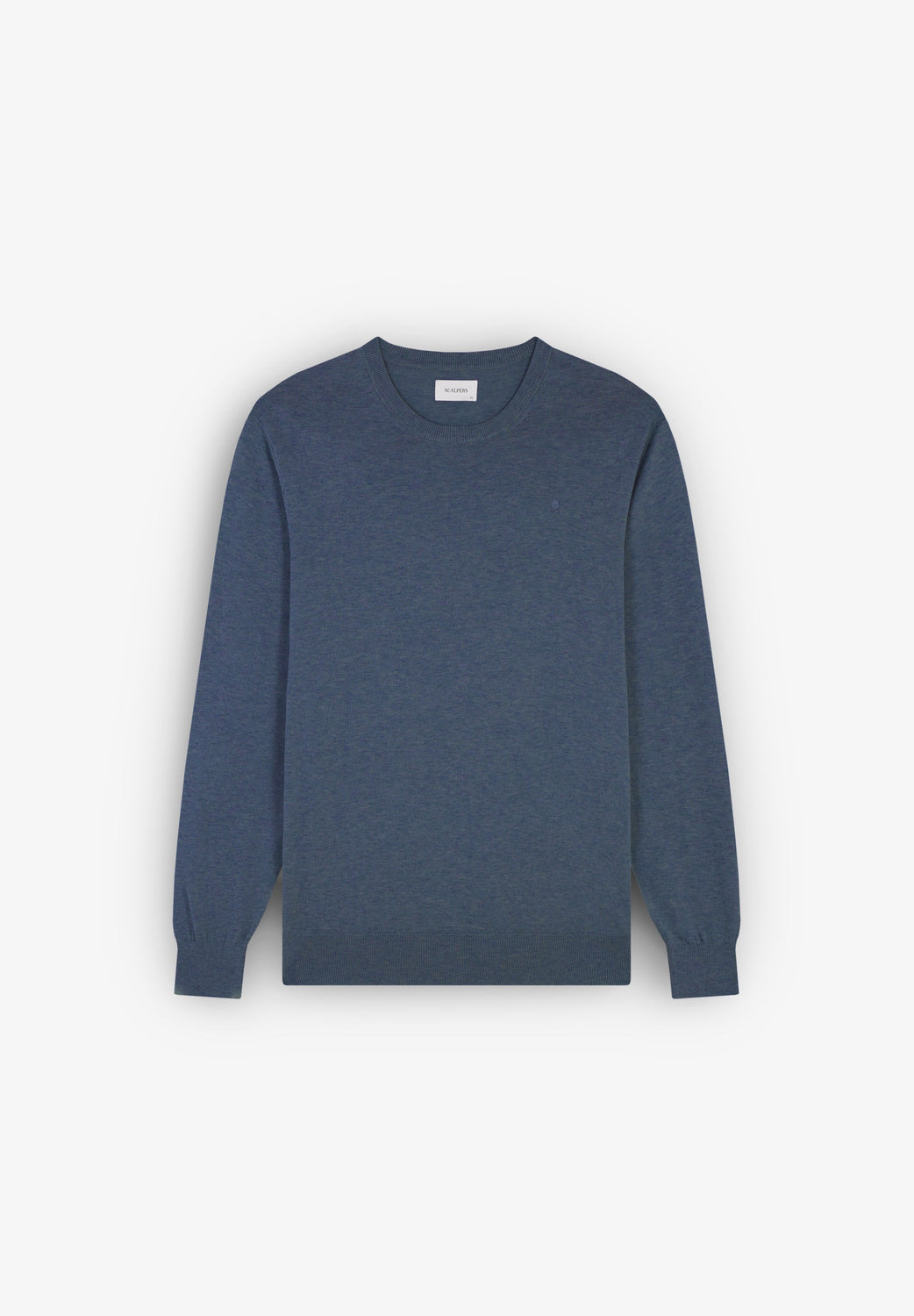 Sweater confecionada em 100% algodão supima de elevada qualidade. Decote redondo. Skull bordada no tom no peito. Acabamentos canelados.