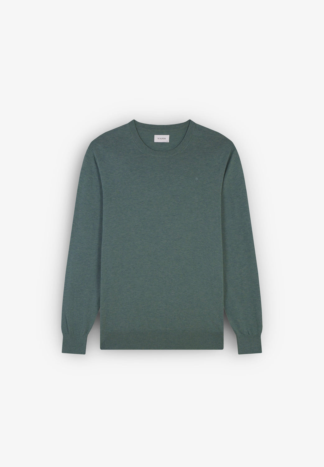 Sweater confecionada em 100% algodão supima de elevada qualidade. Decote redondo. Skull bordada no tom no peito. Acabamentos canelados.