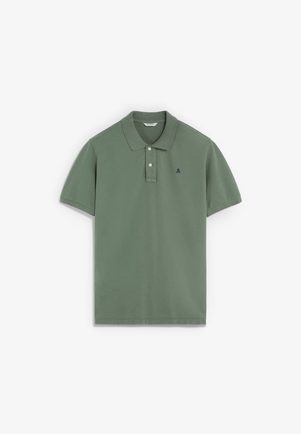 Camisa polo de piqué confecionada em 100% algodão BCI. Manga curta. Regular fit. Placket com dois botões. Skull bordada no tom no peito. Gola e punhos canelados.