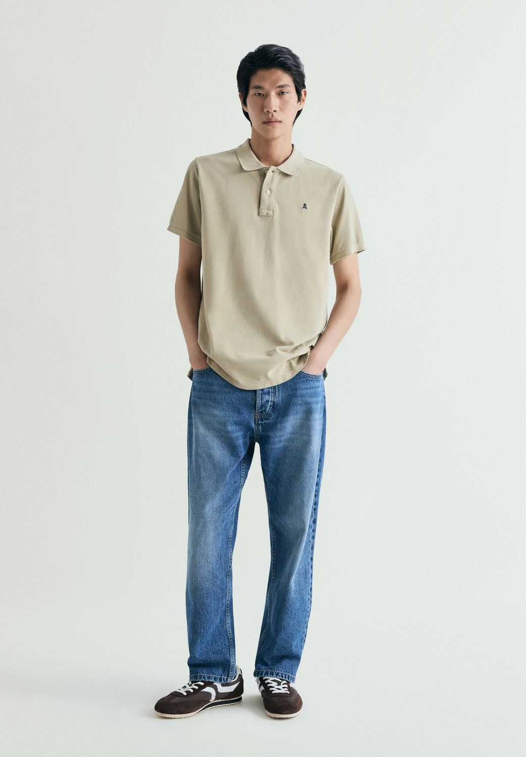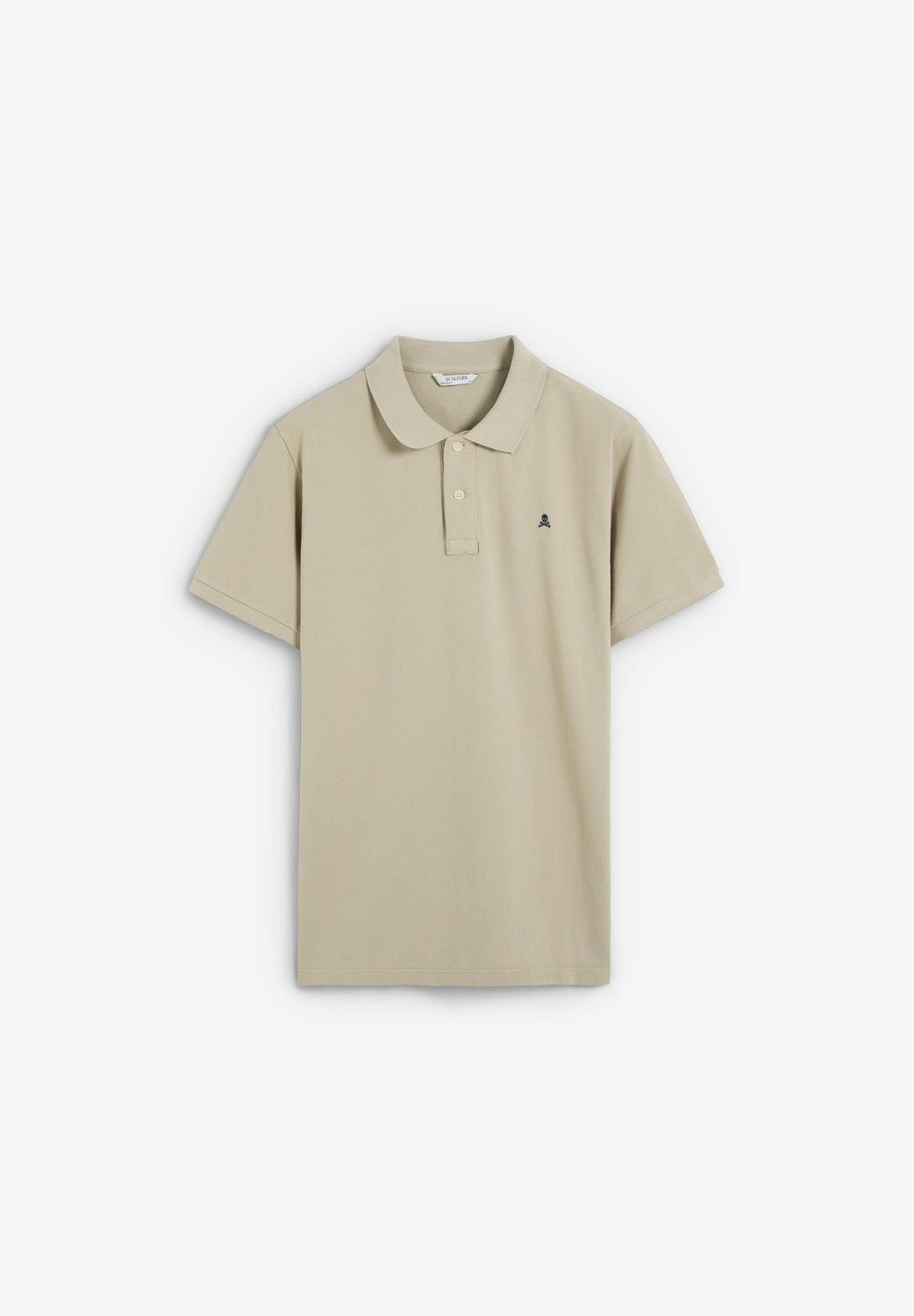 Camisa polo de piqué confecionada em 100% algodão BCI. Manga curta. Regular fit. Placket com dois botões. Skull bordada no tom no peito. Gola e punhos canelados.