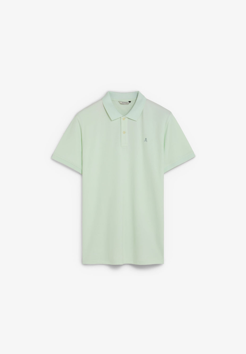 Camisa polo de confeção em 100% algodão BCI. Regular fit. Colarinho de polo com botões. Manga curta. Efeito desbotado. Skull bordada no peito em contraste. Acabamentos em nervuras.
