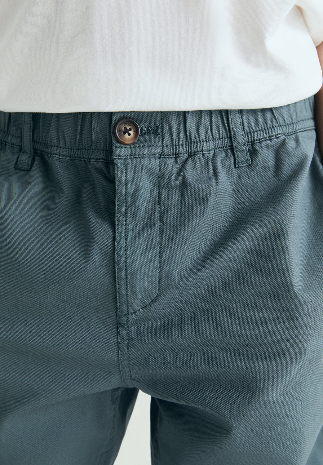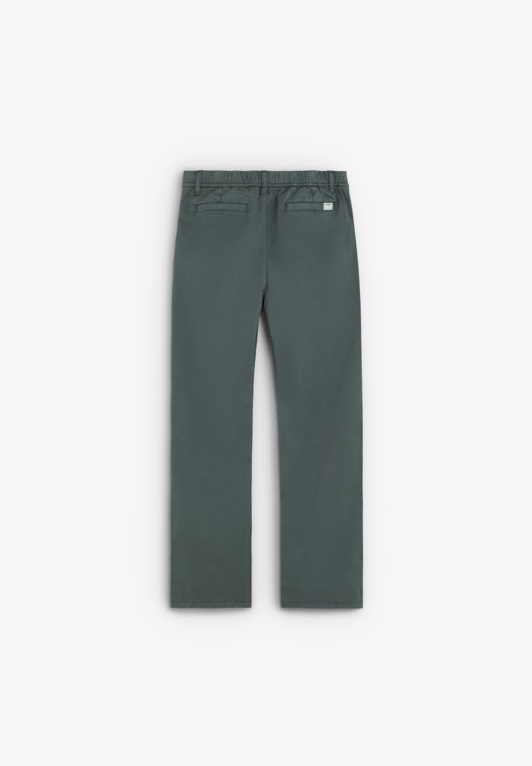 Calças confecionadas em algodão BCI ligeiramente elástico. Relaxed fit. Presilhas na cintura ligeiramente elástica. Bolsos laterais. Fecho com botão.