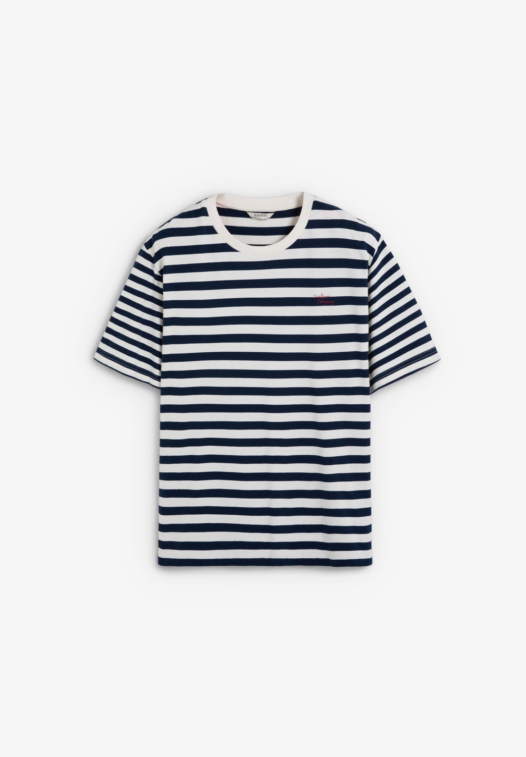 T-shirt confecionada em 100% algodão BCI. Boxy Fit. Decote redondo em contraste e manga curta. Padrão às riscas. Pormenor de bordado no peito.