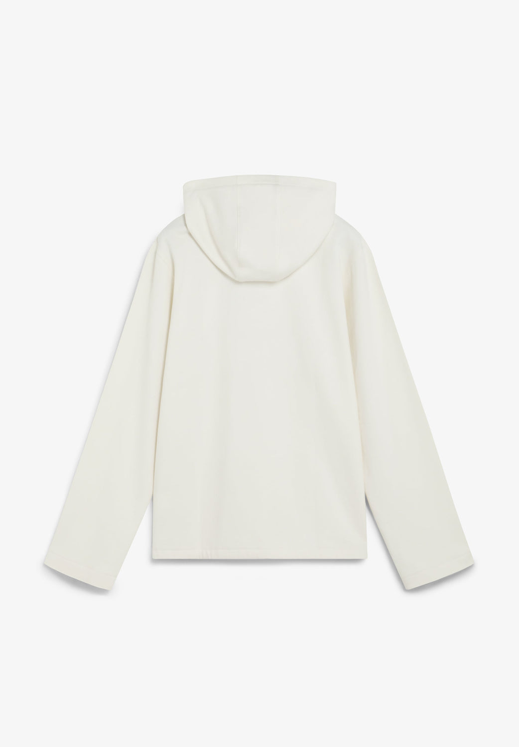 Sweatshirt com corte confecionada em 100% algodão BCI. Efeito desbotado. Manga comprida. Fecho com botões à frente na gola. Cordão inferior ajustável. Bolso frontal.