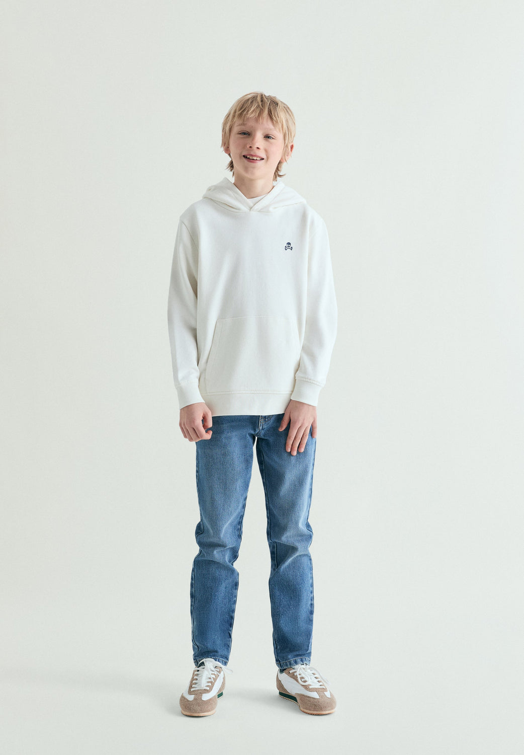 Sweatshirt com capuz e manga comprida confecionada em 100% algodão BCI. Bolso tipo canguru à frente. Logótipo em contraste no peito e padrão traseiro. Acabamentos em nervuras.