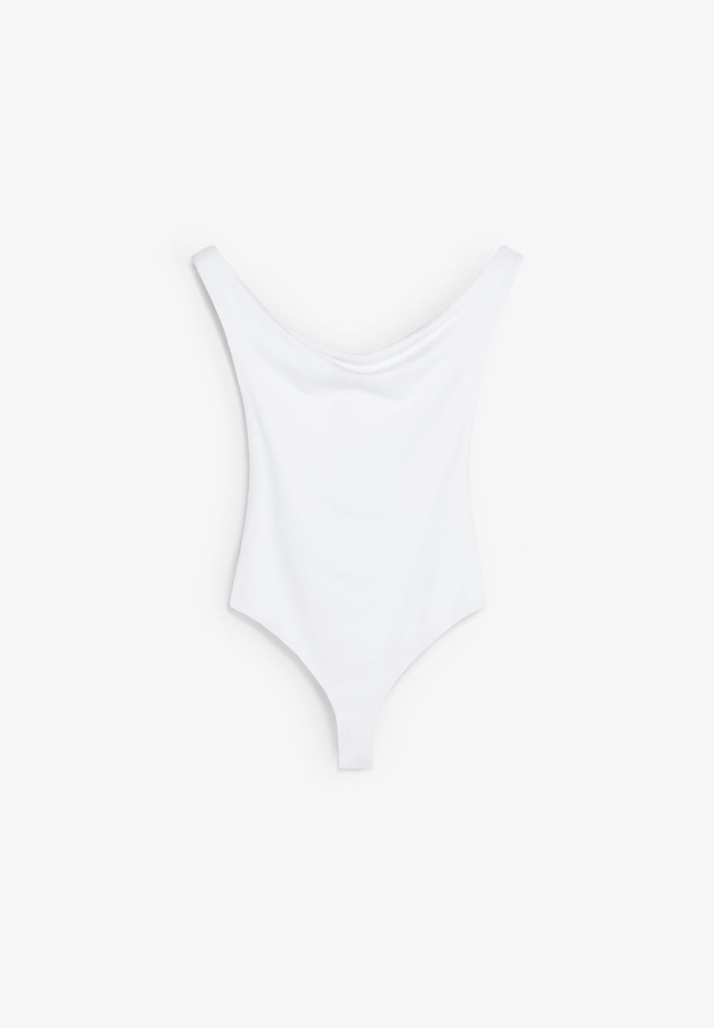 Body confecionado em tecido ligeiramente elástico. Corte slim fit, decot redondo com alças ombro descaído.