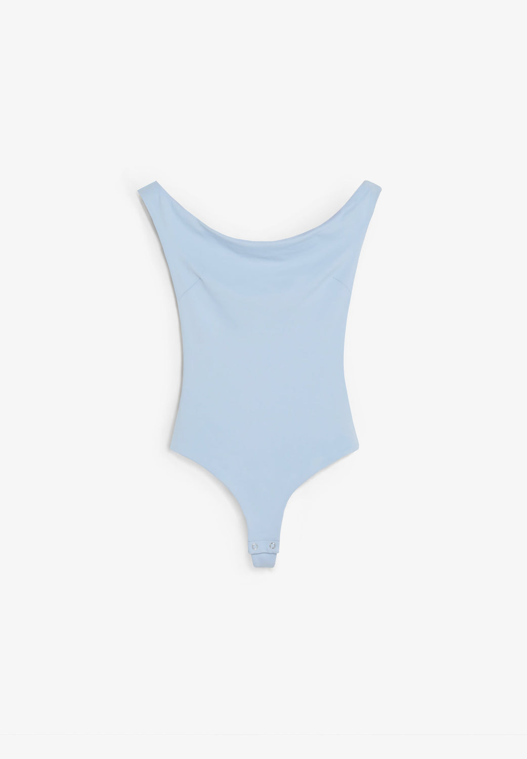 Body confecionado em tecido ligeiramente elástico. Corte slim fit, decot redondo com alças ombro descaído.
