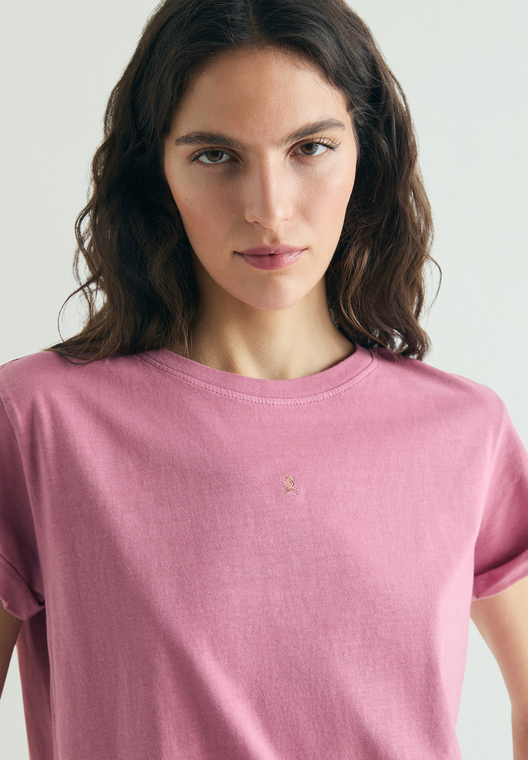 T-shirt confecionada em 100% algodão BCI. Corte regular fit, decote redondo e manga curta. Pormenor de logótipo com skull bordada à frente.