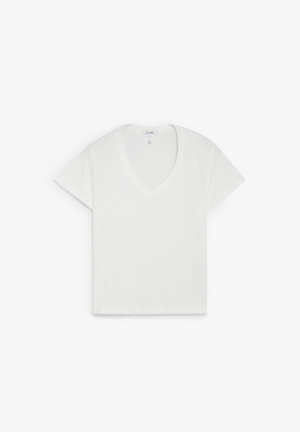 T-shirt confecionada em 100% algodão BCI. Corte regular fit, decote em V e manga curta.