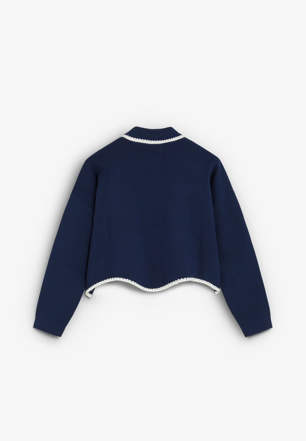 CARDIGAN DE MALHA FINA EM CONTRASTE