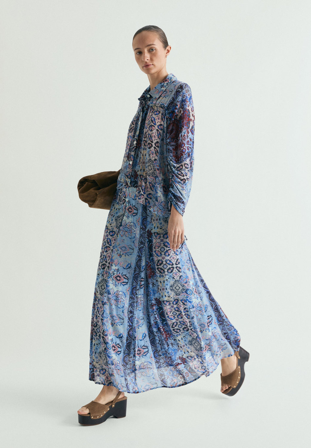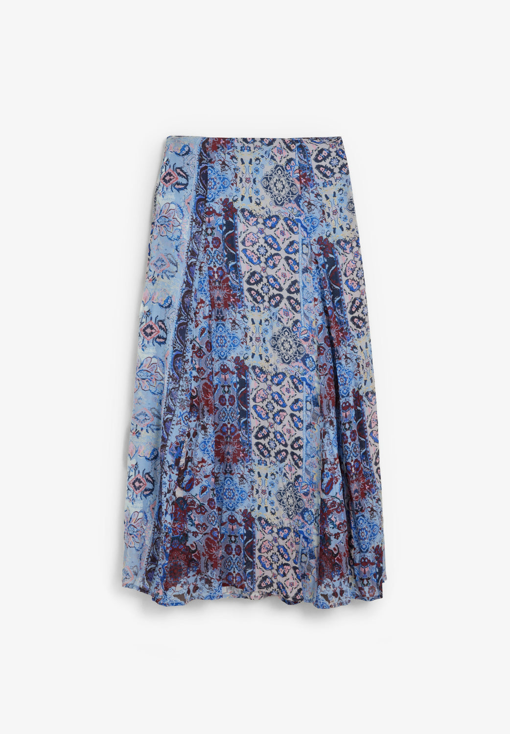 Saia midi confecionada em tecido fluido e leve. Regular fit. Cintura média/alta. Tecido com padrão floral.