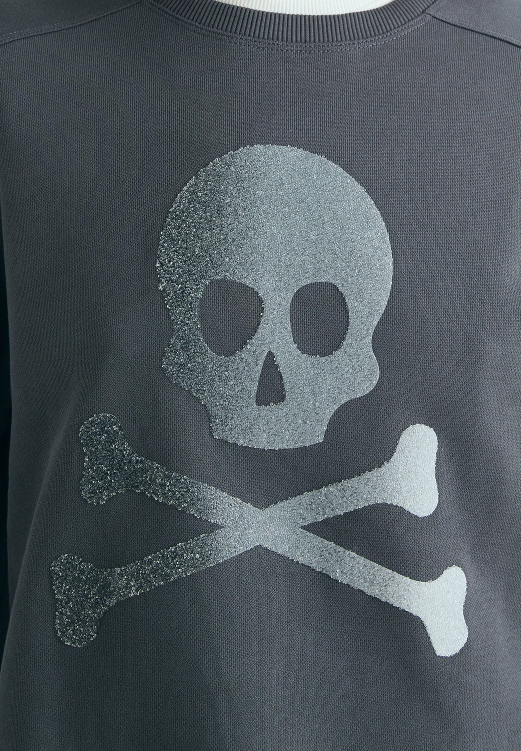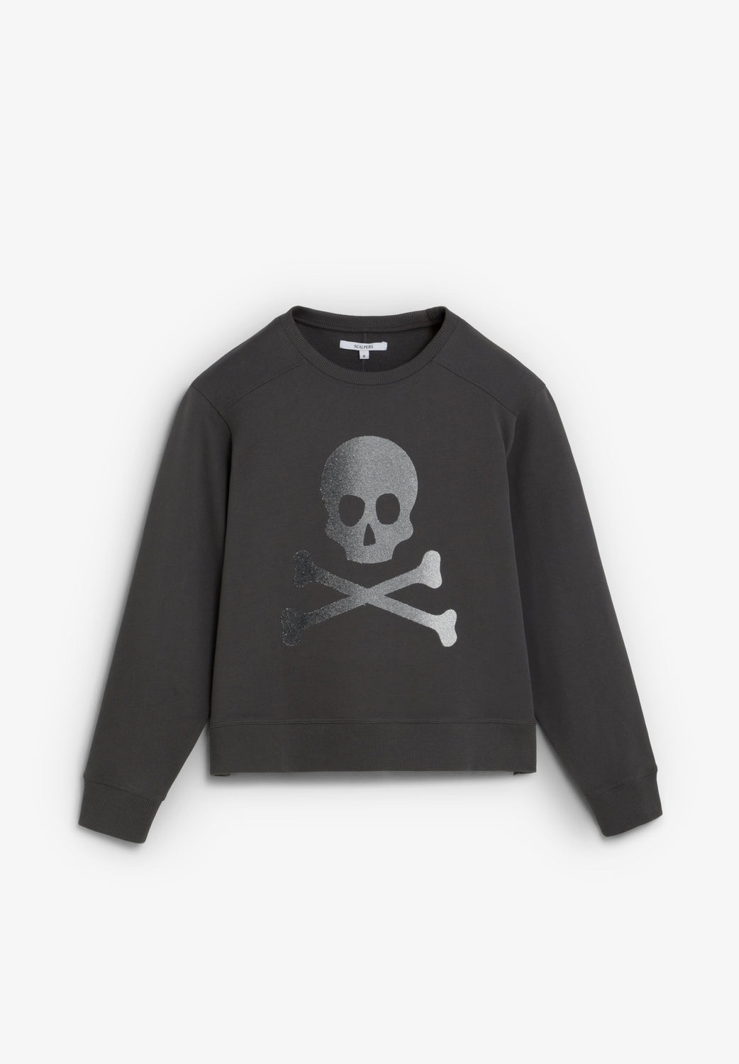 Sweatshirt confecionada em 100% algodão BCI. Corte regular fit. Decote redondo. Manga comprida. Acabamentos em nervuras. Pormenor de skull glitter na parte da frente.
