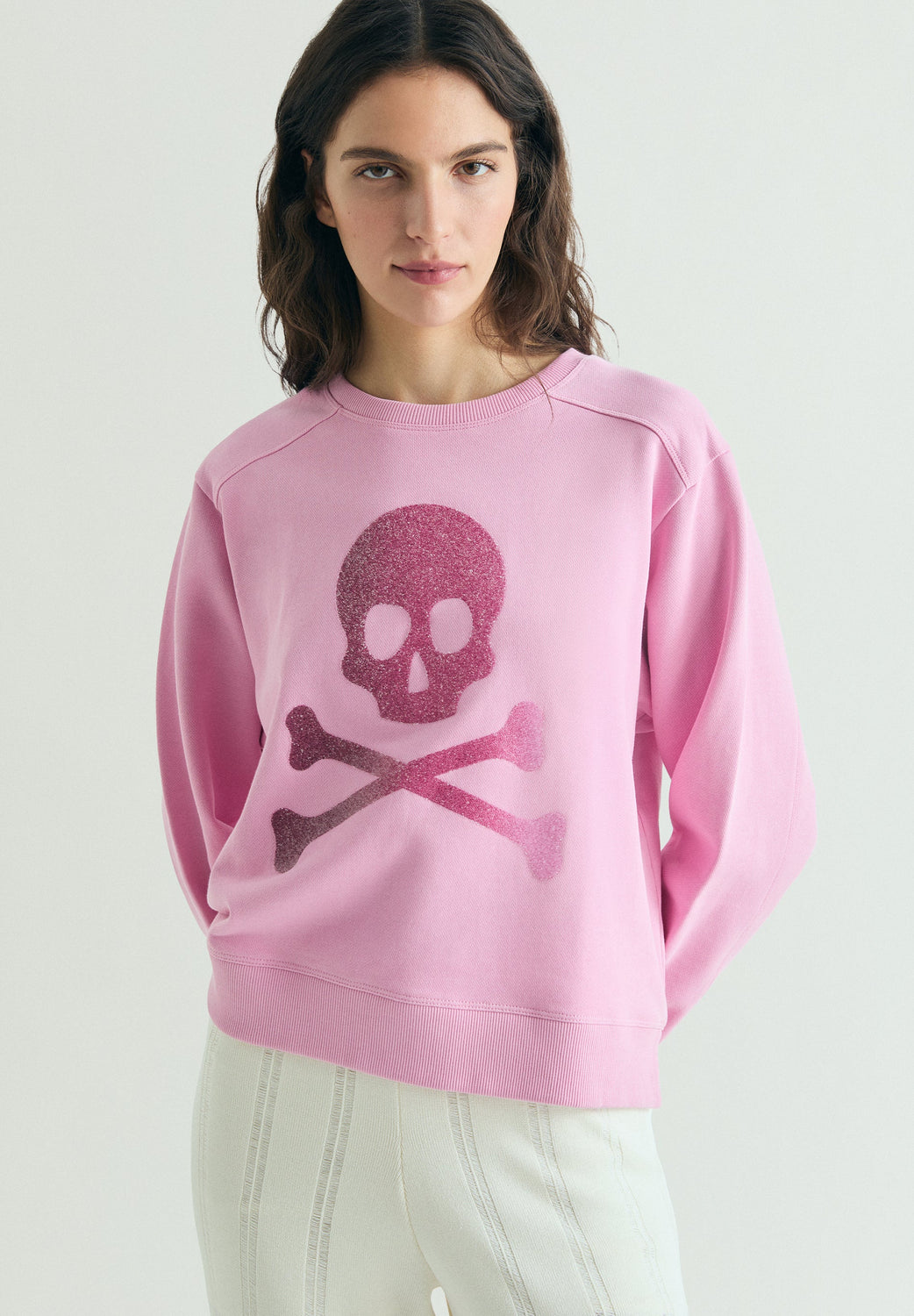 Sweatshirt confecionada em 100% algodão BCI. Corte regular fit. Decote redondo. Manga comprida. Acabamentos em nervuras. Pormenor de skull glitter na parte da frente.