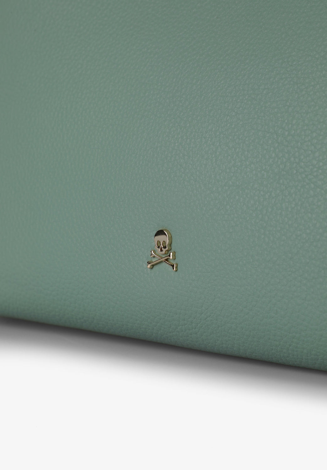 Bolsa confecionada em 100% pele. Forro de camurça. Fecho com botão. Pormenor de apliques nas laterais. Skull metálica à frente. Pormenor de logótipo em padrão. Com necessaire interior com fecho de correr e logótipo prensado.