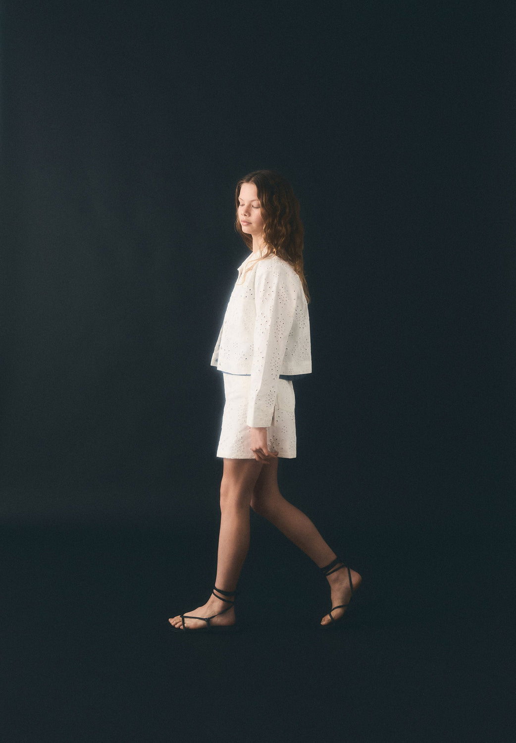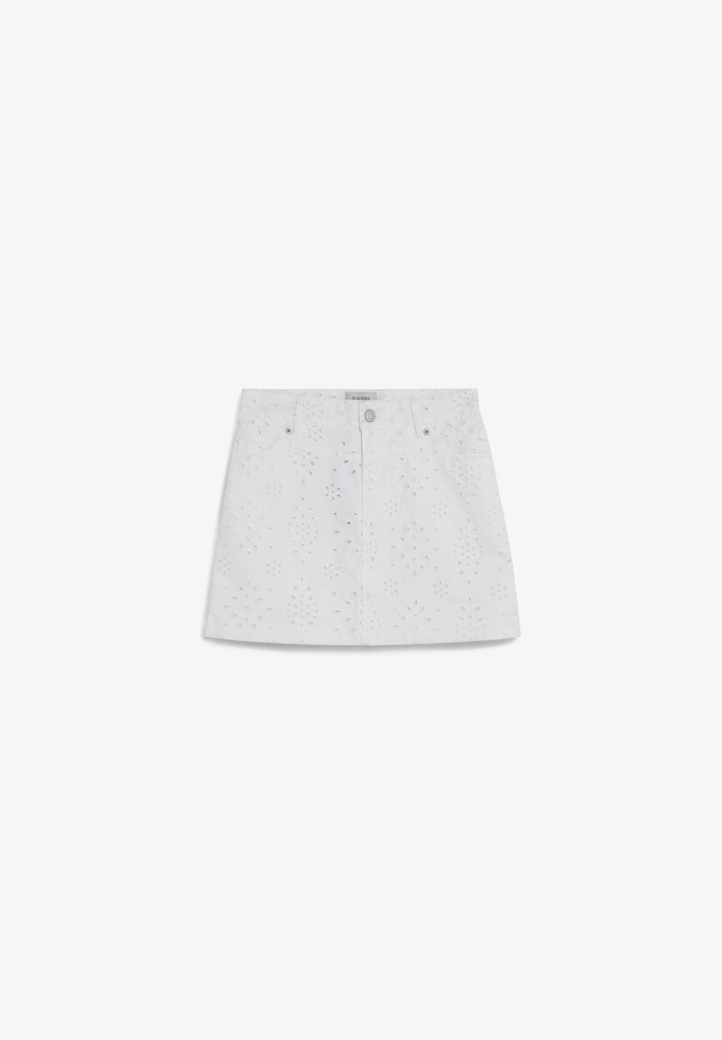 Minissaia confecionada em 100% algodão BCI. Tecido perfurado. Slim Fit. 5 bolsos.