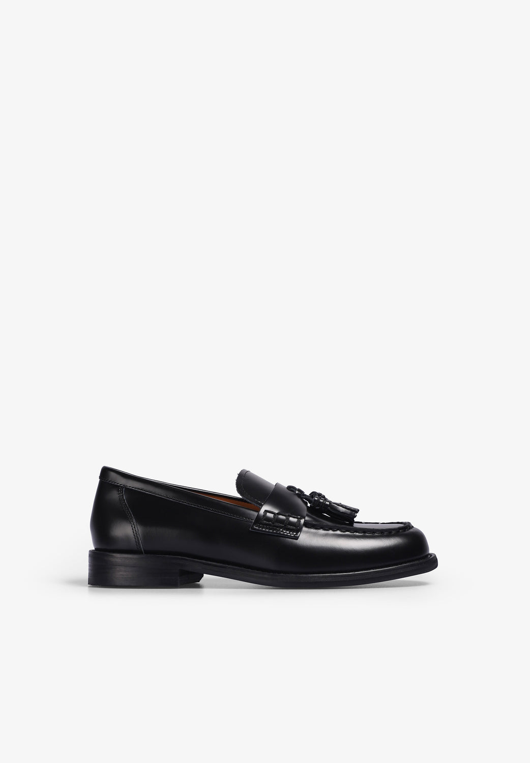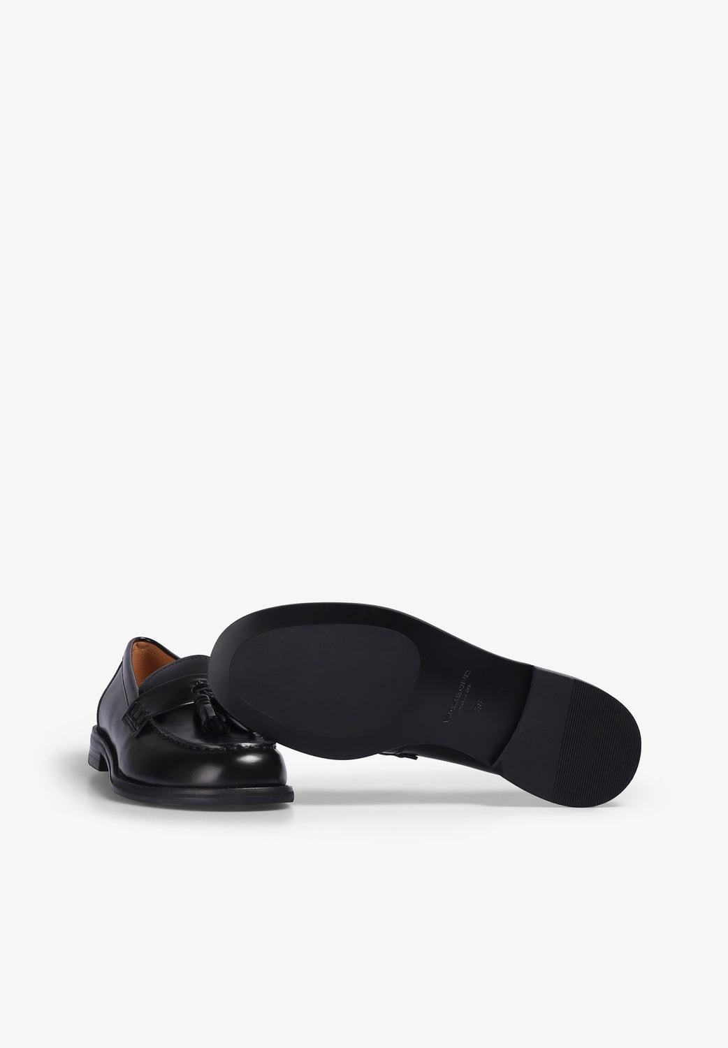 Mocassins Vagabond confecionados em pele preta polida. Com uma costura na biqueira do mocassim, palmilha e forro de pele. A sola tem uma fina camada de caucho que proporciona uma boa aderência. Altura do tacão: 26 mm.