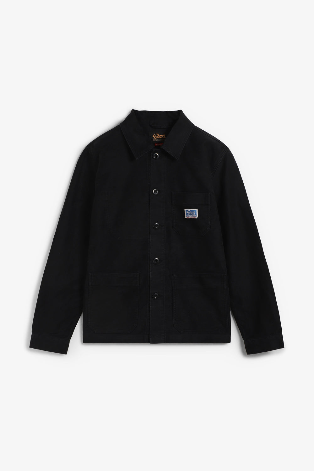 Cardigan Deus Ex Machina confecionado em cetim de algodão e corte descontraído. Com bolsos de remendo no peito, etiqueta da marca no bolso do peito e fecho central com botão de corozo.