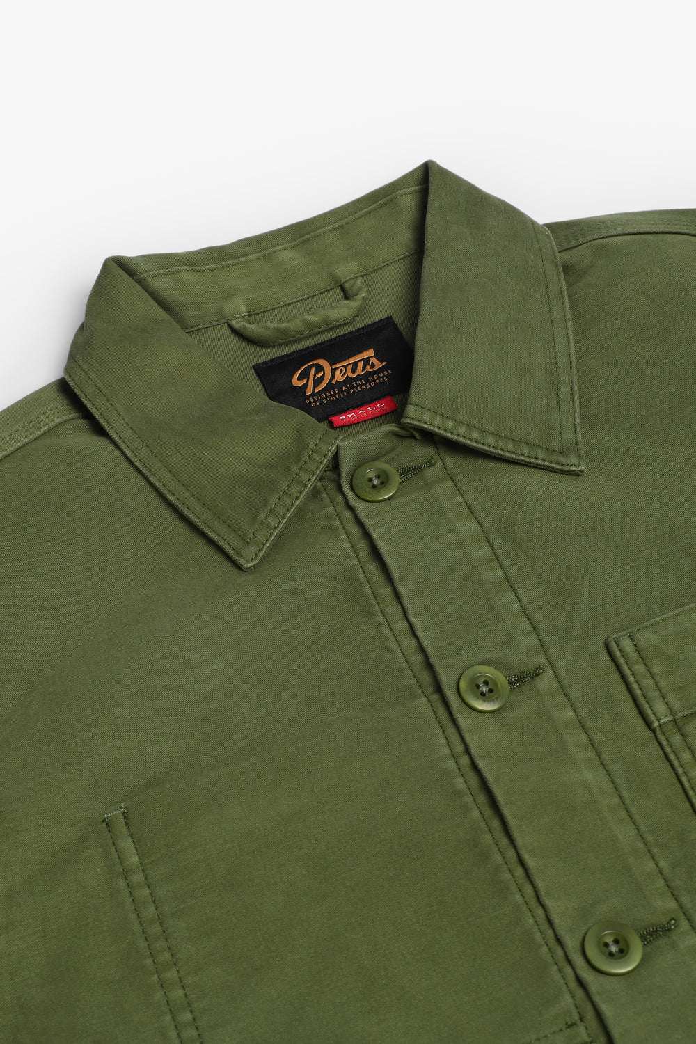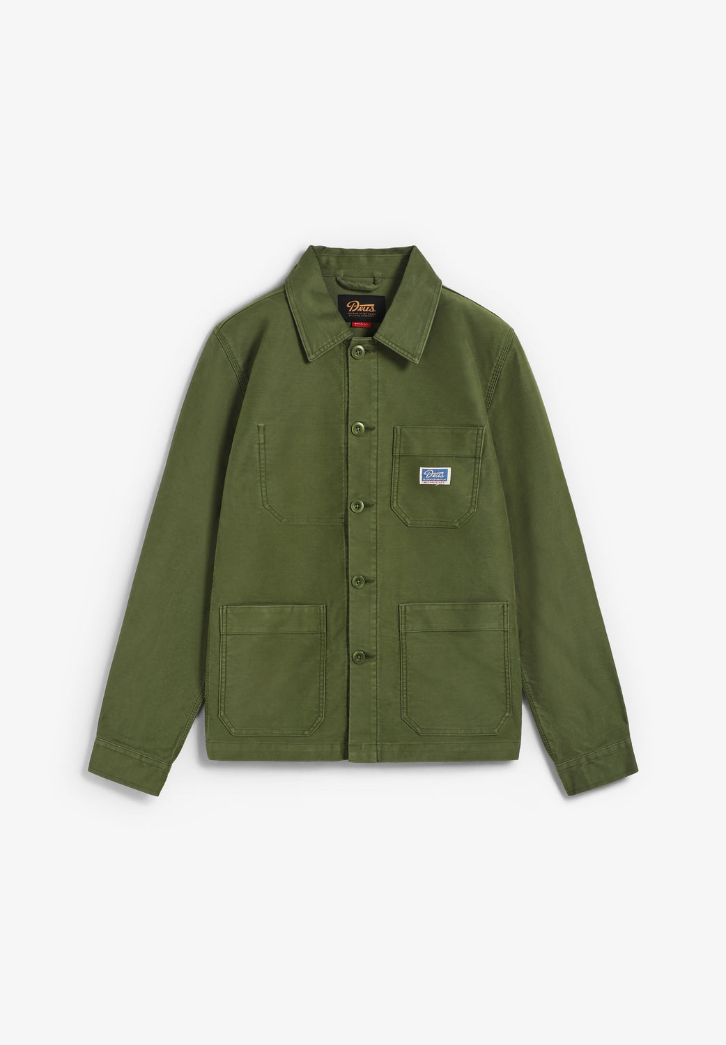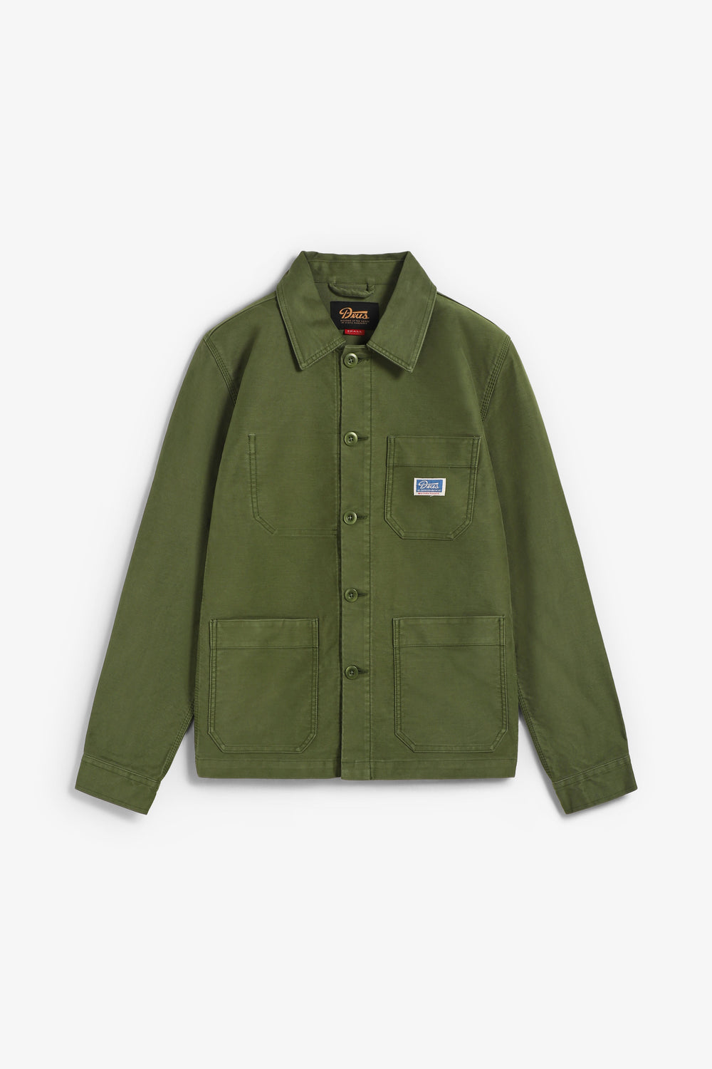 Cardigan Deus Ex Machina confecionado em cetim de algodão e corte descontraído. Com bolsos de remendo no peito, etiqueta da marca no bolso do peito e fecho central com botão de corozo.