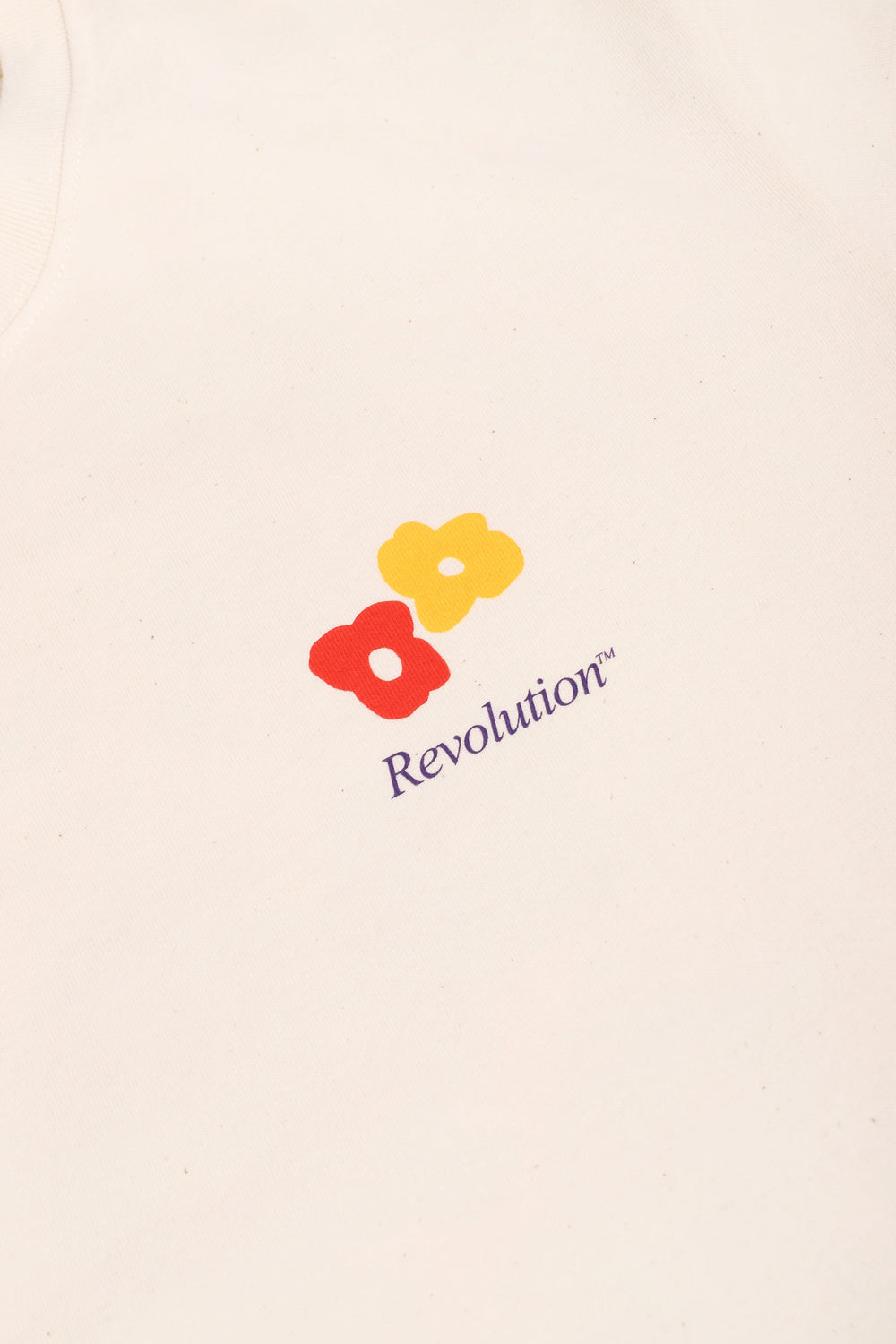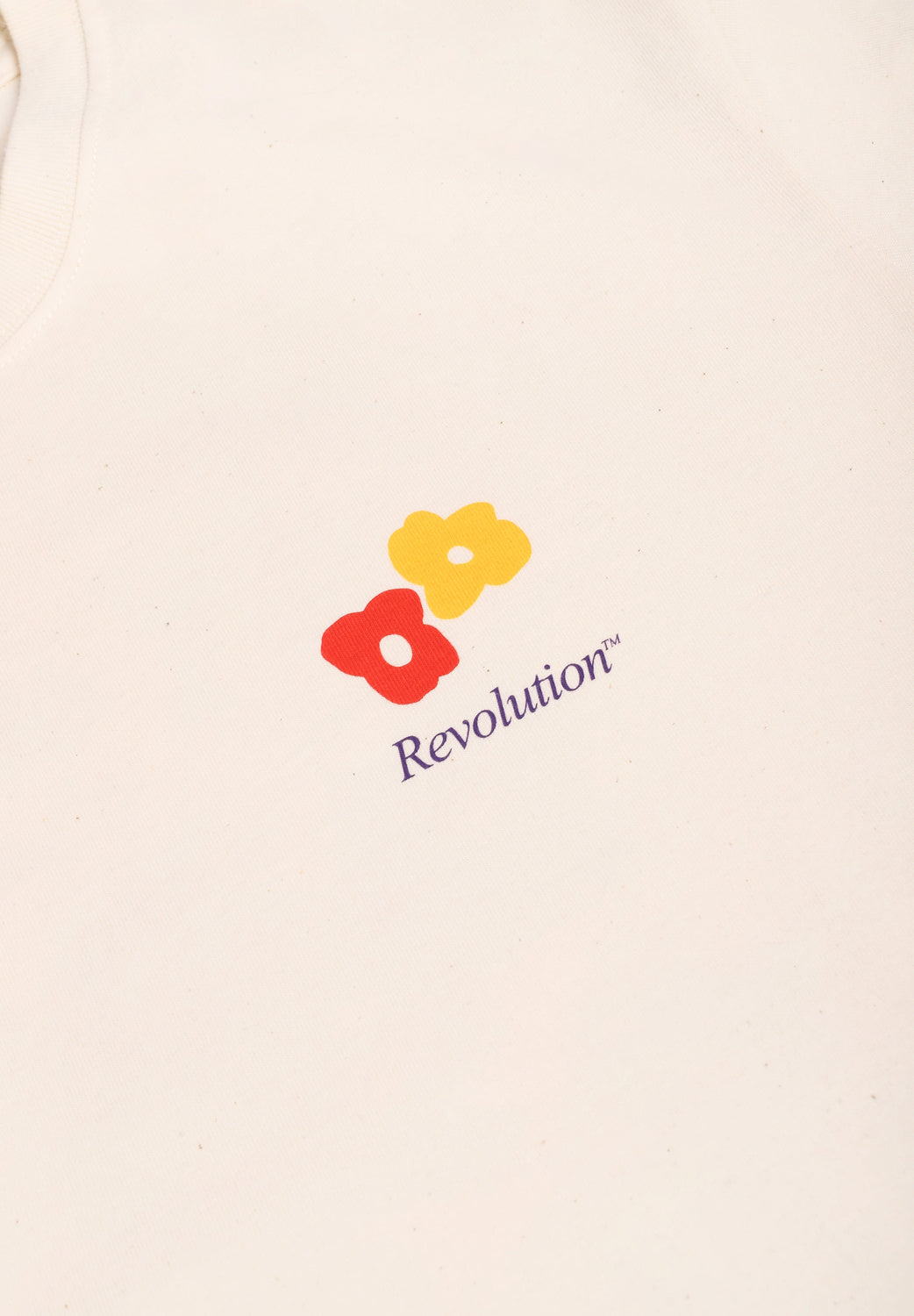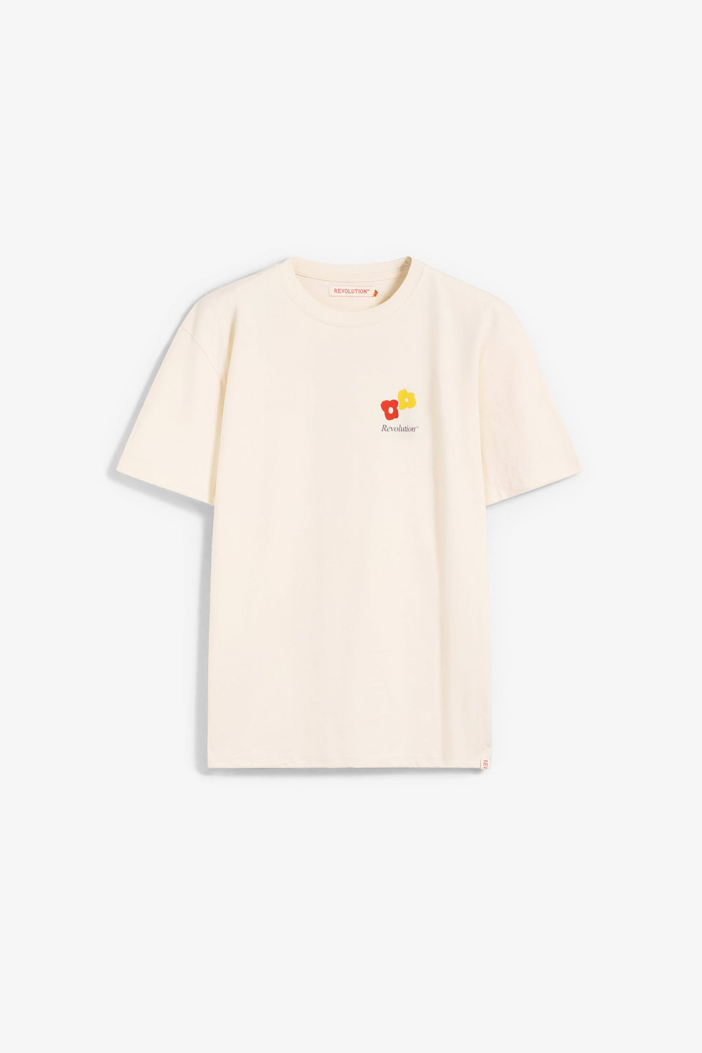 T-shirt Revolution confecionada em 100% algodão orgânico e corte folgado. Com um decote redondo, manga curta e um padrão gráfico grande atrás e um pequeno no peito.