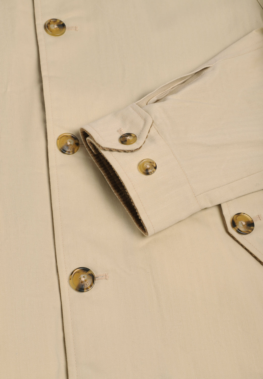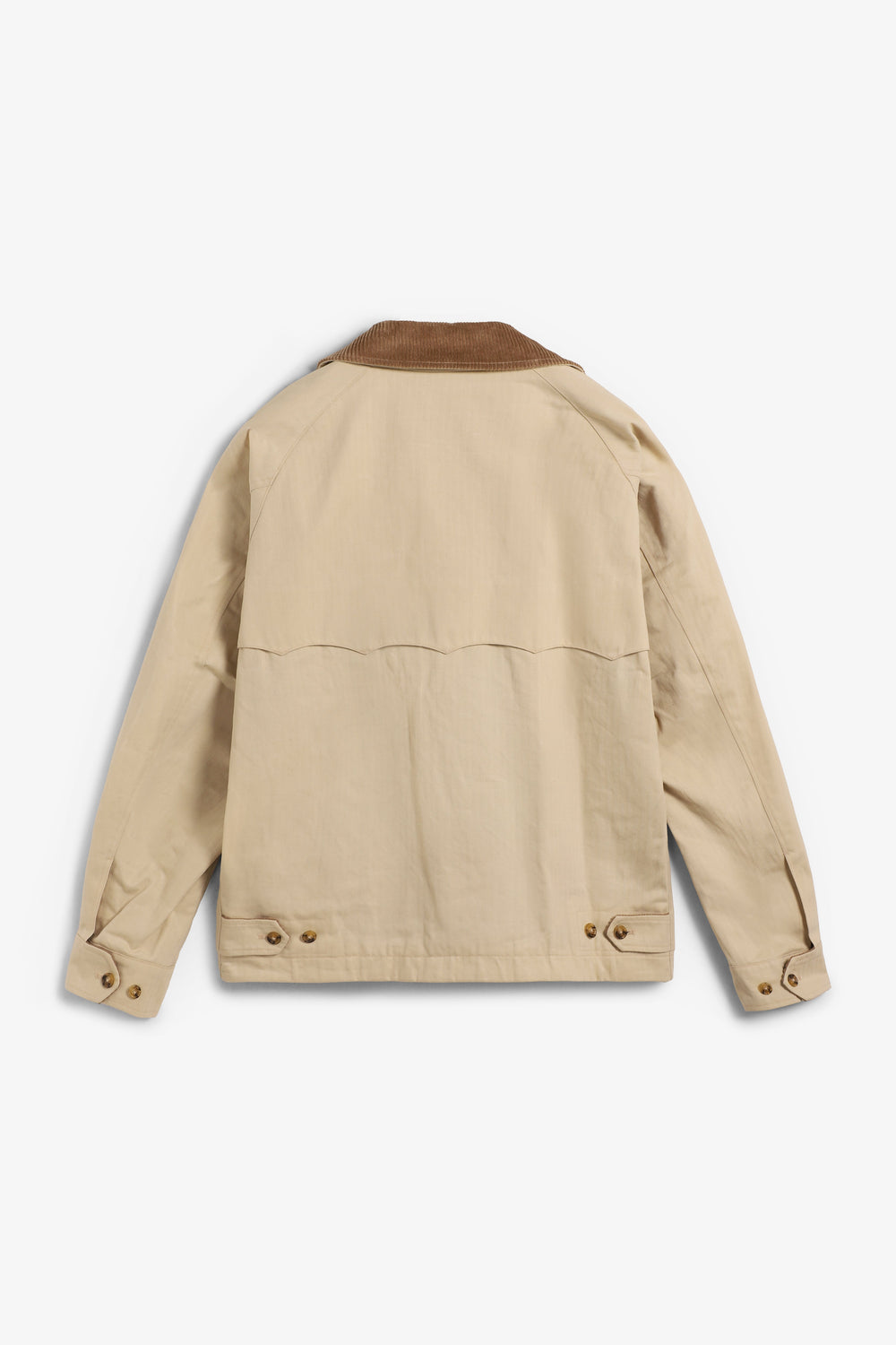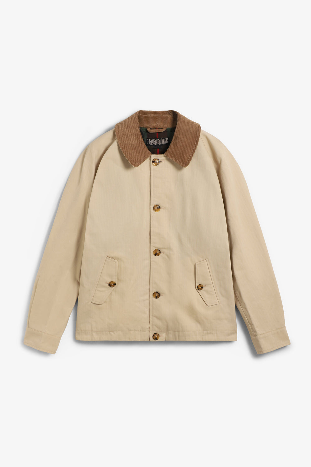 Cardigan Baracuta confecionado em 100% algodão e corte folgado. Com um acabamento encerado para um brilho subtil, pormenores funcionais, como bolsos e os punhos ajustáveis e linhas simples.