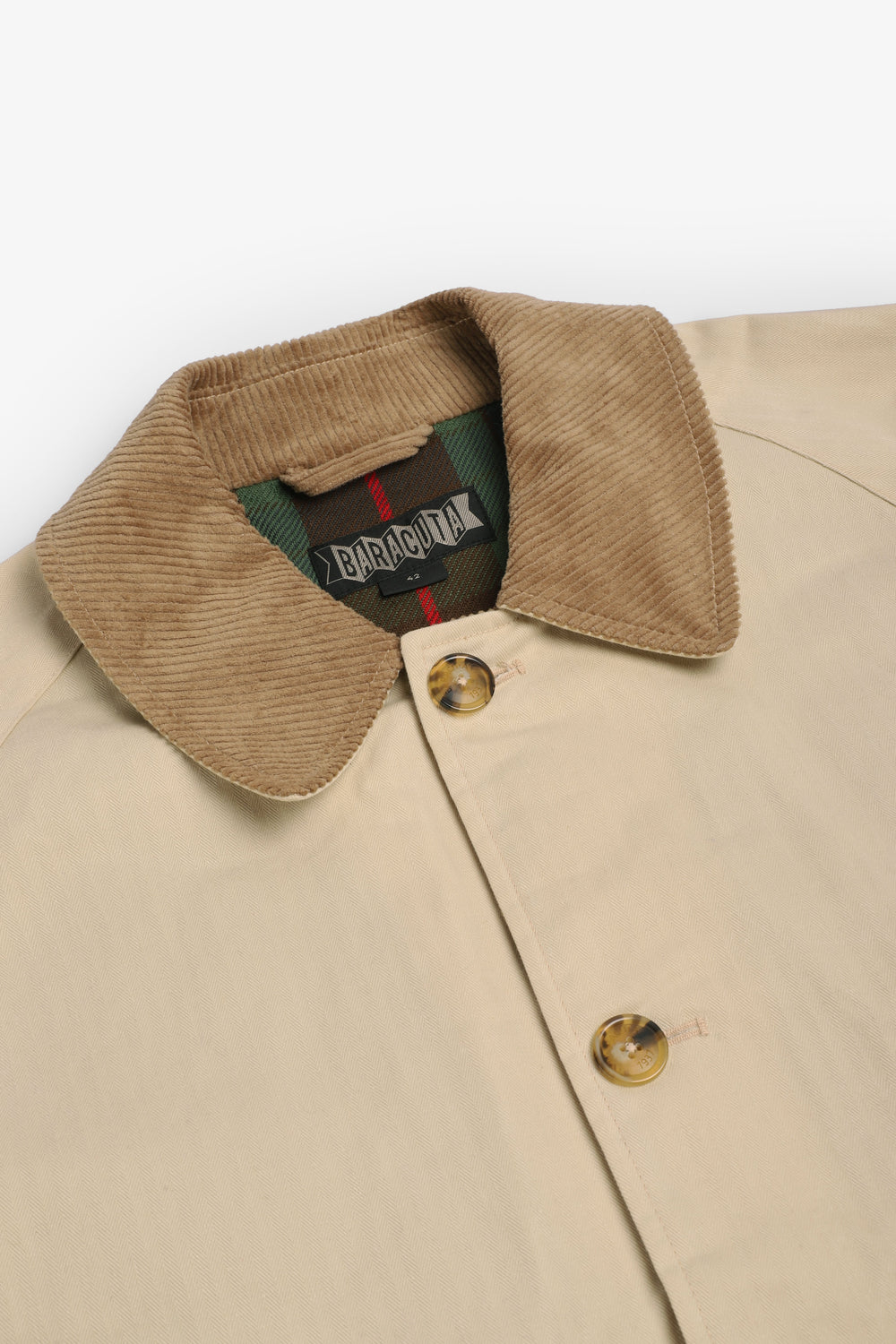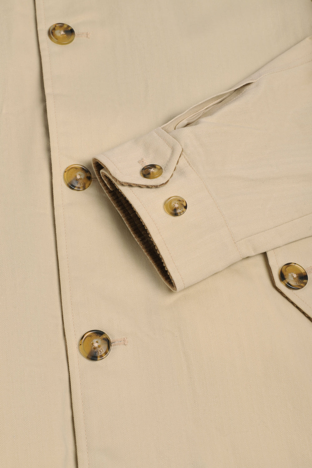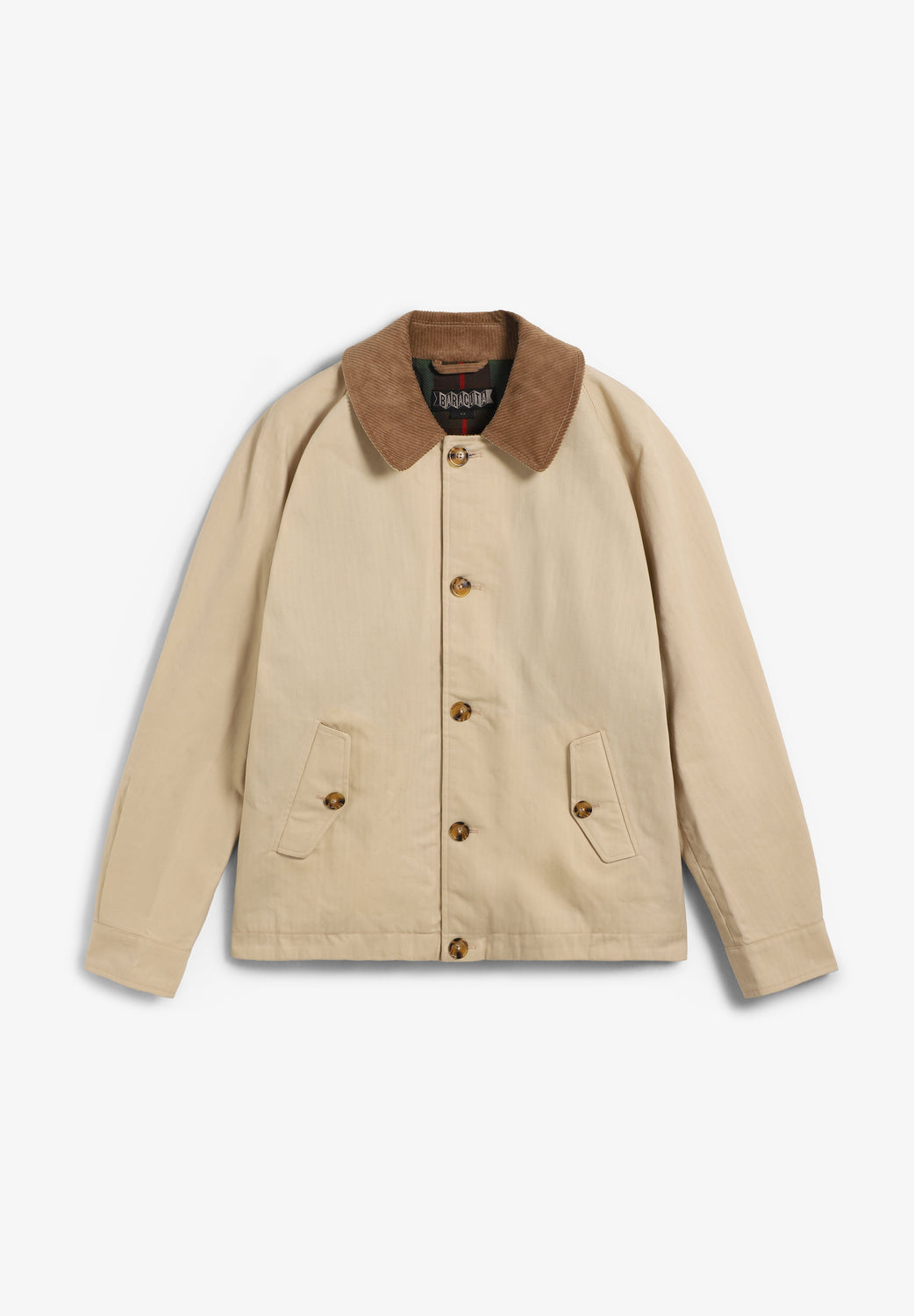 Cardigan Baracuta confecionado em 100% algodão e corte folgado. Com um acabamento encerado para um brilho subtil, pormenores funcionais, como bolsos e os punhos ajustáveis e linhas simples.